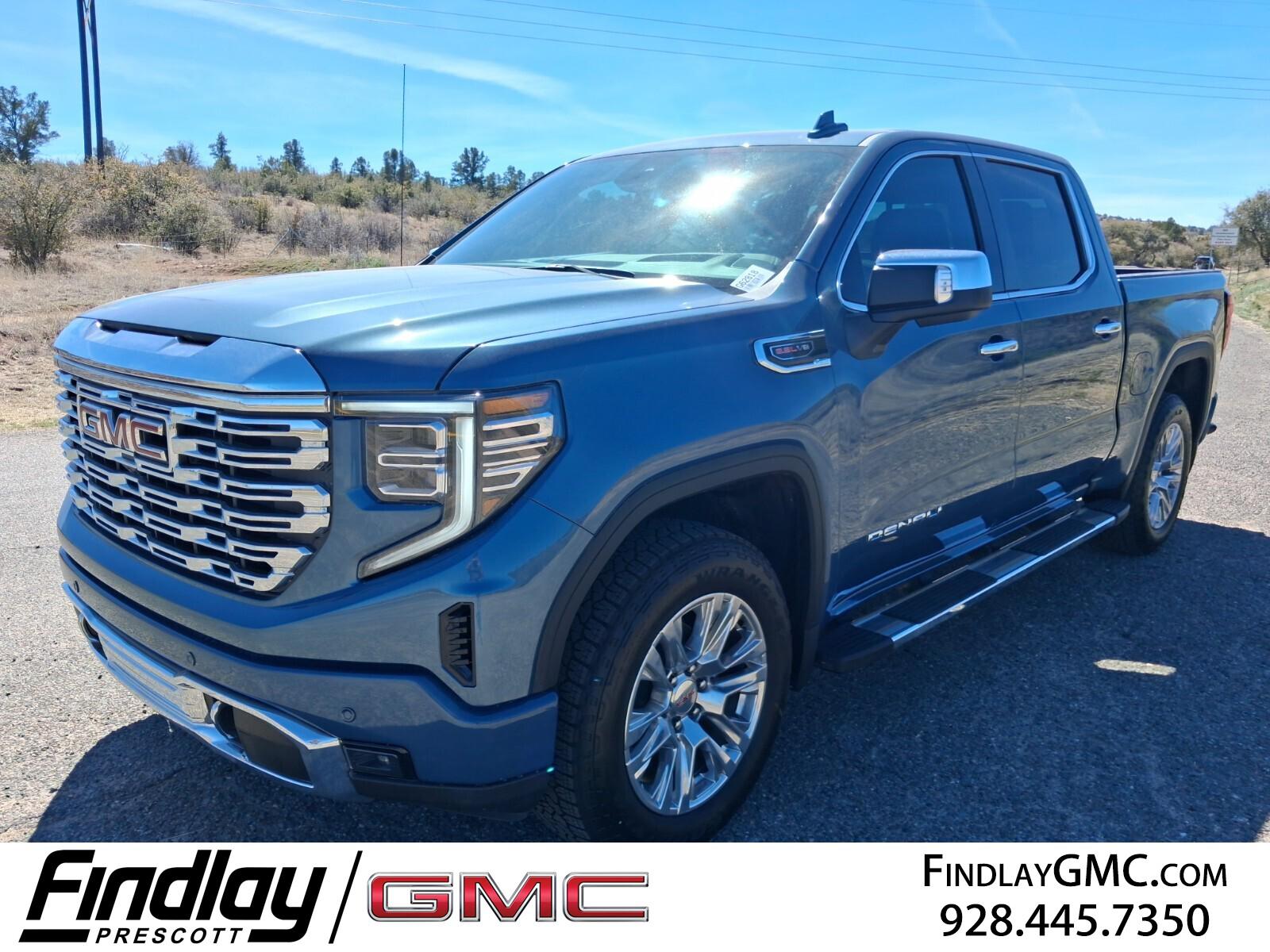Welcome to Findlay GMC in Prescott, AZ. We have multiple locations with over 600 cars in stock. If you are looking for something specific that this Sierra 1500 doesn't have, please contact us directly. This GMC Sierra 1500 is equipped with the following options: Preferred Equipment Group 5SA (120-Volt Bed Mounted Power Outlet, 120-Volt Interior Power Outlet, 170 Amp Alternator, 2 Charge/Data USB Ports Inside Center Console, 2 Type-C Charge-Only Rear USB Ports, 2 USB Ports, Auto-Locking Rear Differential, Auxiliary External Transmission Oil Cooler, Bed View Camera, Chrome Header with Signature Denali Chrome Grille, Chrome Recovery Hooks, Chrome Wheel to Wheel Assist Steps, Color-Keyed Carpeting Floor Covering, Deep-Tinted Glass, Denali Premium Suspension with Adaptive Ride Control, Electric Rear-Window Defogger, Floor-Mounted Center Console, Front Rain-Sensing Wipers, HD Surround Vision, Heated 2nd Row Outboard Seats, Heated Driver and Front Outboard Passenger Seating, Heavy-Duty Air Filter, Hill Descent Control, Hitch View, in-Vehicle Trailering System App, Integrated Trailer Brake Controller, Keyless Open and Start, LED Cargo Area Lighting, OnStar Services Capable, Perimeter Lighting, Power Door Locks, Power Front Passenger Windows with Express Up/Down, Power Front Windows with Driver Express Up/Down, Power Rake and Telescoping Steering Column, Power Rear Windows with Express Down, Power Sliding Rear Window with Rear Defogger, Premium Bose 7-Speaker Sound System, Push Button Start, Rear Cross Traffic Braking, Rear Pedestrian Detection, Rear Wheelhouse Liners, Remote Vehicle Starter System, SiriusXM with 360L Trial Subscription, Spray-on Pickup Bedliner with GMC Logo, Steering Wheel Audio Controls, Theft Deterrent System (unauthorized Entry), Trailer Camera Provisions, Trailer Side Blind Zone Alert, Ultrasonic Front and Rear Park Assist, Universal Home Remote, Ventilated Driver and Front Passenger Seats, Wheels: 20'' x 9'' Multi-Dimensional Polished Aluminum, Wi-Fi