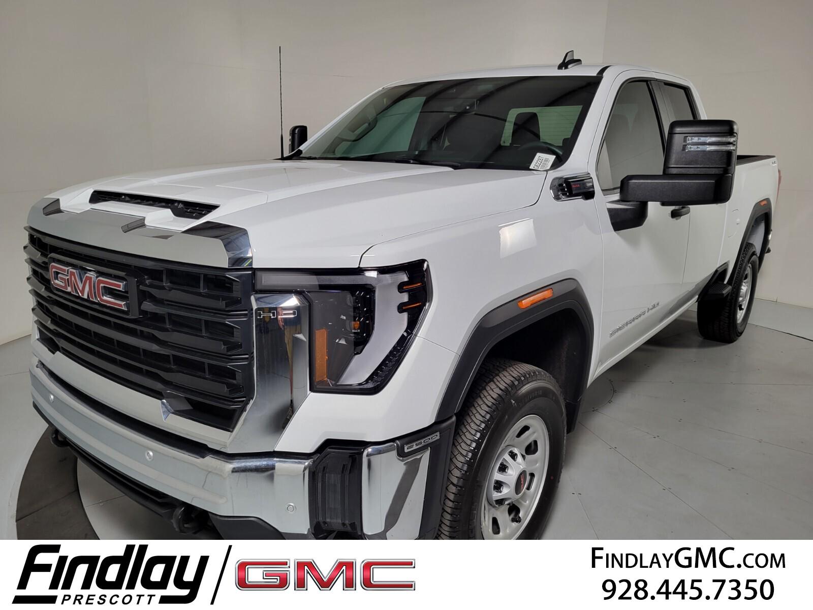 Welcome to Findlay GMC in Prescott, AZ. We have multiple locations with over 600 cars in stock. If you are looking for something specific that this Sierra 2500HD doesn't have, please contact us directly. This GMC Sierra 2500HD is equipped with the following options: Suspension Package, 10-Speed Automatic, 4WD, Vinyl, 2 Charge/Data USB Ports, 2-Speed Electronic Shift Transfer Case, 3.73 Rear Axle Ratio, 4-Way Manual Driver Seat Adjuster, 4-Way Manual Passenger Seat Adjuster, 4-Wheel Disc Brakes, 6 Speakers, 6-Speaker Audio System Feature, ABS brakes, Air Conditioning, AM/FM radio, Apple CarPlay/Android Auto, Auto High-beam Headlights, Automatic Emergency Braking, Brake assist, Buckle to Drive, Bumpers: chrome, Chrome Grille w/Flat Black Grille Insert Bars, Compass, Delay-off headlights, Driver door bin, Dual front impact airbags, Dual front side impact airbags, Electronic Stability Control, Emergency communication system: OnStar, Following Distance Indicator, Forward Collision Alert, Front 40/20/40 Split-Bench Seats, Front anti-roll bar, Front Center Armrest w/Storage, Front Pedestrian Braking, Front reading lights, Front wheel independent suspension, Fully automatic headlights, Heavy-Duty 80 Amp Battery, Illuminated entry, IntelliBeam Automatic High Beam On/Off, Lane Departure Warning System, Low tire pressure warning, Occupant sensing airbag, OnStar Services Capable, Outside temperature display, Overhead airbag, Overhead console, Panic alarm, Passenger door bin, Passenger vanity mirror, Pickup Box, Power steering, Power windows, Premium audio system: GMC Infotainment System, Push Button Start, Radio: AM/FM w/GMC Infotainment System, Rear reading lights, Rear step bumper, Remote Keyless Entry, Remote keyless entry, Solar Absorbing Tinted Glass, Speed control, Split folding rear seat, Tachometer, Tilt steering wheel, Traction control, Trip computer, Variably intermittent wipers, Vinyl Seat Trim, Voltmeter, Wheels: 17'' Silver Painted Steel, and Wireless Phone Project