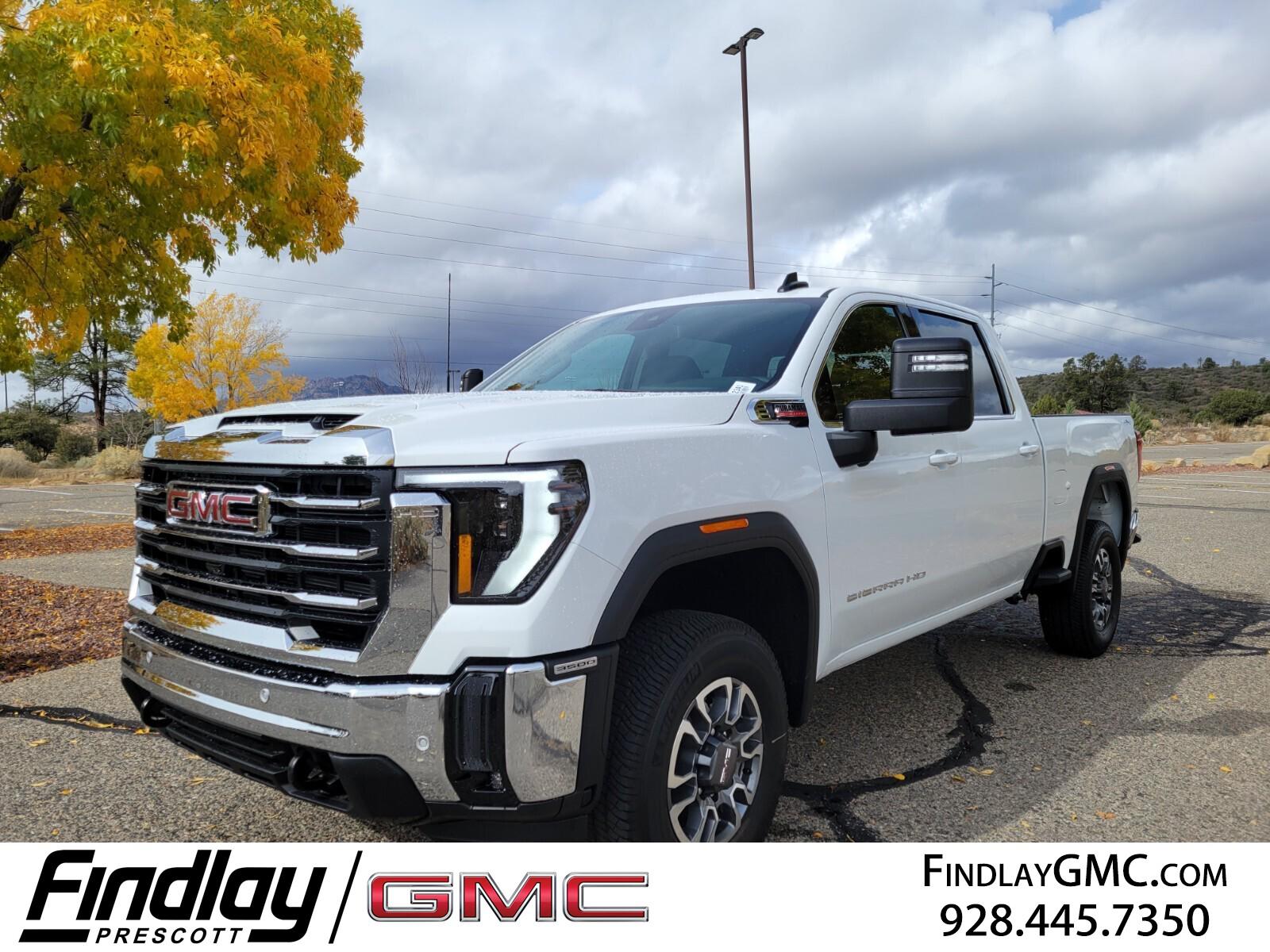 Welcome to Findlay GMC in Prescott, AZ. We have multiple locations with over 600 cars in stock. If you are looking for something specific that this Sierra 3500HD doesn't have, please contact us directly. This GMC Sierra 3500HD is equipped with the following options: Cloth Rear Seat with Storage Package, Gooseneck/5th Wheel Prep Package (Spray-on Pickup Bedliner with GMC Logo), Preferred Equipment Group 3SA (120-Volt Bed Mounted Power Outlet, 120-Volt Instrument Panel Power Outlet, 18'' Machined Aluminum Wheels, 2 Charge-Only Rear USB Ports, 2 Charge/Data USB Ports, 2-Speed Electronic Shift Transfer Case, 4-Way Manual Driver Seat Adjuster, Chrome Surround Grille with Chrome Insert Bars, Deep-Tinted Glass, Keyless Open and Start, Push Button Start, SiriusXM with 360L Trial Subscription, Steering Wheel Audio Controls, and Wireless Phone Projection), Preferred Package (Adaptive Cruise Control, Hitch Guidance with Hitch View, LED Cargo Area Lighting, Power Sliding Rear Window with Defogger, and Universal Home Remote), Remote Start Package (Electric Rear-Window Defogger, Remote Vehicle Starter System, and Unauthorized Entry Theft-Deterrent System), Sierra HD Pro Safety Plus Package (Bed View Camera with Two Trailer Camera Provisions, HD Surround Vision, Rear Cross Traffic Alert, Trailer Camera Provisions, Trailer Side Blind Zone Alert, and Ultrasonic Front and Rear Park Assist), SLE Convenience Package (10-Way Power Driver Seat Adjuster with Lumbar, Dual-Zone Automatic Climate Control, LED Fog Lamps, LED Smoked Amber Roof Marker Lamps, and Manual Tilt-Wheel/Telescoping Steering Column), SLE Heated Package (Heated Driver and Front Outboard Passenger Seats and Heated Steering Wheel), SLE Value Package, Suspension Package, 10-Speed Automatic, 4WD, Black Cloth, 2-Speed Active Transfer Case, 220 Amp Alternator, 4-Way Manual Passenger Seat Adjuster, 4-Wheel Disc Brakes, 6 Speakers, 6-Speaker Audio System Feature, ABS brakes, Air Conditioning, Alloy wheels, AM/FM radio: SiriusXM