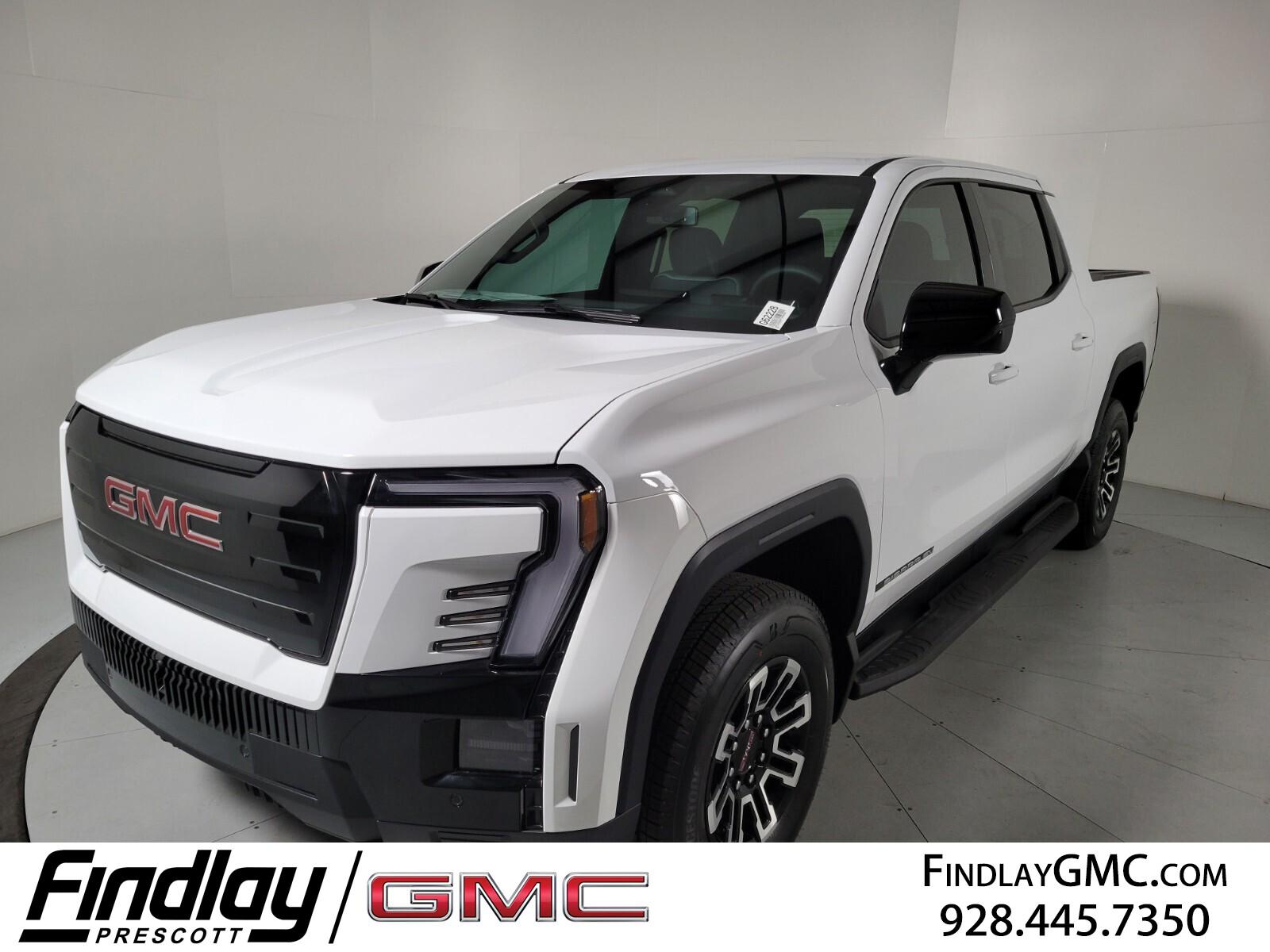 Welcome to Findlay GMC in Prescott, AZ. Findlay Prescott is once again moving forward with the Red Tag Event starting on the 1st thru 16th of November. We have multiple locations with over 600 cars in stock. If you are looking for something specific that this Sierra EV doesn't have, please contact us directly. This GMC Sierra EV is equipped with the following options: Preferred Equipment Group 3SB (Standard Range Battery Pack), 11.63 Axle Ratio, 2-Way Driver Power Lumbar Seat Adjuster, 4-Way Manual Front Passenger Seat Adjuster, 4-Wheel Disc Brakes, 6 Speakers, 6-Speaker Audio System Feature, 8-Way Power Driver Seat Adjuster, ABS brakes, Air Conditioning, Alloy wheels, AM/FM radio: SiriusXM with 360L, Auto High-beam Headlights, Auto-dimming Rear-View mirror, Automatic temperature control, Brake assist, Bumpers: body-color, CoreTec Seat Trim, Delay-off headlights, Driver door bin, Driver vanity mirror, Dual front impact airbags, Dual front side impact airbags, Electronic Stability Control, Emergency communication system: OnStar, Four wheel independent suspension, Front anti-roll bar, Front Bucket Seats, Front Bucket Seats w/Center Console, Front dual zone A/C, Front reading lights, Fully automatic headlights, Garage door transmitter, GM Energy PowerShift Charger (LPO), Heated door mirrors, Heated Front Driver & Passenger Seats, Heated front seats, Heated steering wheel, Low tire pressure warning, NACS DC Adapter (LPO), Navigation System, Occupant sensing airbag, Outside temperature display, Overhead airbag, Overhead console, Panic alarm, Passenger door bin, Passenger vanity mirror, Power door mirrors, Power driver seat, Power steering, Power windows, Premium audio system: Premium GMC Infotainment System, Radio data system, Radio: 16.8'' Diagonal Premium GMC Infotainment Sys, Rain sensing wipers, Rear fog lights, Rear reading lights, Rear seat center armrest, Rear step bumper, Rear window defroster, Remote keyless entry, Security system, SiriusXM w/360L Trial Subscrip