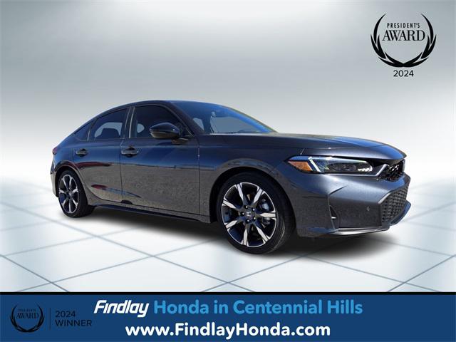 Meteorite Gray Metallic 2026 Honda Civic Hybrid Sport Touring FWD eCVT 2.0L I4 DOHC 16V50/45 City/Highway MPGALL NEW CABIN AND A/C FILTERS, NEW WIPERS, FRESH OIL CHANGE, 12 Speakers, 4-Wheel Disc Brakes, ABS brakes, Adaptive Cruise Control: Adaptive Cruise Control (ACC) with Low-Speed Follow, Air Conditioning, Alloy wheels, AM/FM radio, Apple CarPlay/Android Auto, Auto High-beam Headlights, Auto-dimming Rear-View mirror, Automatic temperature control, Blind Spot Information (BSI) System warning, Bose Premium Sound System, Brake assist, Bumpers: body-color, Compass, Delay-off headlights, Driver door bin, Driver vanity mirror, Dual front impact airbags, Dual front side impact airbags, Electronic Stability Control, Emergency communication system: HondaLink, Exterior Parking Camera Rear, Four wheel independent suspension, Front anti-roll bar, Front Bucket Seats, Front Center Armrest, Front dual zone A/C, Front reading lights, Fully automatic headlights, Heated door mirrors, Heated Front Bucket Seats, Heated front seats, Illuminated entry, Knee airbag, Lane departure: Lane Keeping Assist System (LKAS) active, Leather Shift Knob, Leather steering wheel, Leather-Trimmed Seat Trim, Low tire pressure warning, Navigation system: Google Maps, Occupant sensing airbag, Outside temperature display, Overhead airbag, Overhead console, Panic alarm, Passenger door bin, Passenger vanity mirror, Power door mirrors, Power driver seat, Power moonroof, Power passenger seat, Power steering, Power windows, Radio data system, Rain sensing wipers, Rear anti-roll bar, Rear seat center armrest, Rear side impact airbag, Rear window defroster, Rear window wiper, Remote keyless entry, Security system, Speed control, Speed-sensing steering, Split folding rear seat, Steering wheel mounted audio controls, Tachometer, Telescoping steering wheel, Tilt steering wheel, Traction control, Trip computer, Turn signal indicator mirrors, Variably intermittent wipers, Wheels: 18"" Alloy w/Matte Shark Gray Inserts.