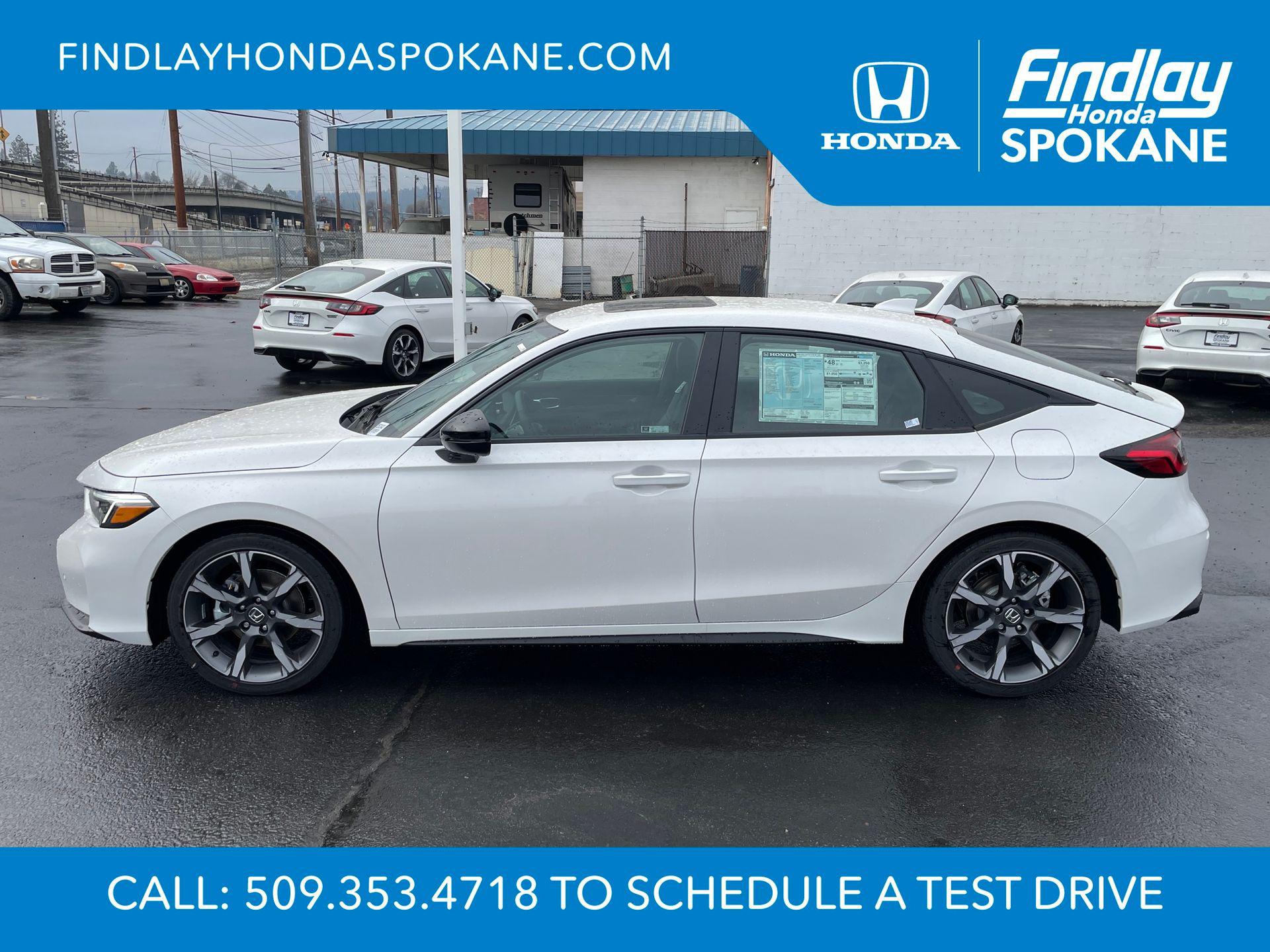 2026 Honda Civic Hybrid Sport Touring FWDFriends, family, and neighbors have chosen us time and time again to be their dealer. Our simple and easy process, market aggressive pricing, and friendly knowledgeable staff are all reasons why. Come see for yourself why we are the top rated dealer in Spokane. Our process is designed to be easy, give you choices, and save you time. Our pressure free buying process allows you to see the quote you want. We give every customer multiple different monthly payments and down payments all on one sheet, so you can choose the one that best fits your budget. Come see how easy it is to purchase a car, truck, SUV from Findlay Honda Spokane. This Honda Civic Hybrid is equipped with these features: 12 Speakers, 4-Wheel Disc Brakes, ABS brakes, Adaptive Cruise Control: Adaptive Cruise Control (ACC) with Low-Speed Follow, Air Conditioning, Alloy wheels, AM/FM radio, Apple CarPlay/Android Auto, Auto High-beam Headlights, Auto-dimming Rear-View mirror, Automatic temperature control, Blind Spot Information (BSI) System warning, Bose Premium Sound System, Brake assist, Bumpers: body-color, Compass, Delay-off headlights, Driver door bin, Driver vanity mirror, Dual front impact airbags, Dual front side impact airbags, Electronic Stability Control, Emergency communication system: HondaLink, Exterior Parking Camera Rear, Four wheel independent suspension, Front anti-roll bar, Front Bucket Seats, Front Center Armrest, Front dual zone A/C, Front reading lights, Fully automatic headlights, Heated door mirrors, Heated Front Bucket Seats, Heated front seats, Illuminated entry, Knee airbag, Lane departure: Lane Keeping Assist System (LKAS) active, Leather Shift Knob, Leather steering wheel, Leather-Trimmed Seat Trim, Low tire pressure warning, Navigation system: Google Maps, Occupant sensing airbag, Outside temperature display, Overhead airbag, Overhead console, Panic alarm, Passenger door bin, Passenger vanity mirror, Power door mirrors, Power driver seat, Power moonroof, Power passenger seat, Power steering, Power windows, Radio data system, Rain sensing wipers, Rear anti-roll bar, Rear seat center armrest, Rear side impact airbag, Rear window defroster, Rear window wiper, Remote keyless entry, Security system, Speed control, Speed-sensing steering, Split folding rear seat, Steering wheel mounted audio controls, Tachometer, Telescoping steering wheel, Tilt steering wheel, Traction control, Trip computer, Turn signal indicator mirrors, Variably intermittent wipers, and Wheels: 18"" Alloy with Matte Shark Gray Inserts.Platinum White Pearl50/45 City/Highway MPG Price includes: $500 - Loyalty/Conquest. Exp. 04/30/2026