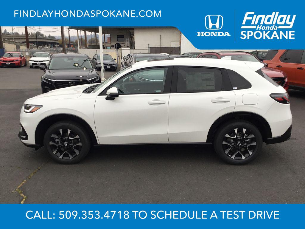 2026 Honda HR-V EX-L AWDFriends, family, and neighbors have chosen us time and time again to be their dealer. Our simple and easy process, market aggressive pricing, and friendly knowledgeable staff are all reasons why. Come see for yourself why we are the top rated dealer in Spokane. Our process is designed to be easy, give you choices, and save you time. Our pressure free buying process allows you to see the quote you want. We give every customer multiple different monthly payments and down payments all on one sheet, so you can choose the one that best fits your budget. Come see how easy it is to purchase a car, truck, SUV from Findlay Honda Spokane. This Honda HR-V is equipped with these features: 18"" Machine-Finished Alloy Wheels, 4-Wheel Disc Brakes, 8 Speakers, ABS brakes, Adaptive Cruise Control: Adaptive Cruise Control (ACC) with Low-Speed Follow, Air Conditioning, Alloy wheels, AM/FM radio, Apple CarPlay/Android Auto, Auto High-beam Headlights, Auto-dimming Rear-View mirror, Automatic temperature control, Blind Spot Information (BSI) System warning, Brake assist, Bumpers: body-color, Compass, Delay-off headlights, Driver door bin, Driver vanity mirror, Dual front impact airbags, Dual front side impact airbags, Electronic Stability Control, Exterior Parking Camera Rear, Four wheel independent suspension, Front anti-roll bar, Front Bucket Seats, Front Center Armrest, Front dual zone A/C, Front reading lights, Fully automatic headlights, Heated door mirrors, Heated Front Bucket Seats, Heated front seats, Illuminated entry, Knee airbag, Leather Shift Knob, Leather steering wheel, Leather-Trimmed Seats, Low tire pressure warning, Occupant sensing airbag, Outside temperature display, Overhead airbag, Panic alarm, Passenger door bin, Passenger vanity mirror, Power door mirrors, Power driver seat, Power moonroof, Power steering, Power windows, Radio data system, Radio: 180-Watt Audio System w/8 Speakers, Rear anti-roll bar, Rear reading lights, Rear side impact airbag, Rear window defroster, Rear window wiper, Remote keyless entry, Security system, Speed control, Speed-sensing steering, Split folding rear seat, Spoiler, Steering wheel mounted audio controls, Tachometer, Telescoping steering wheel, Tilt steering wheel, Traction control, Trip computer, Turn signal indicator mirrors, and Variably intermittent wipers.Platinum White PearlRecent Arrival! 25/30 City/Highway MPG