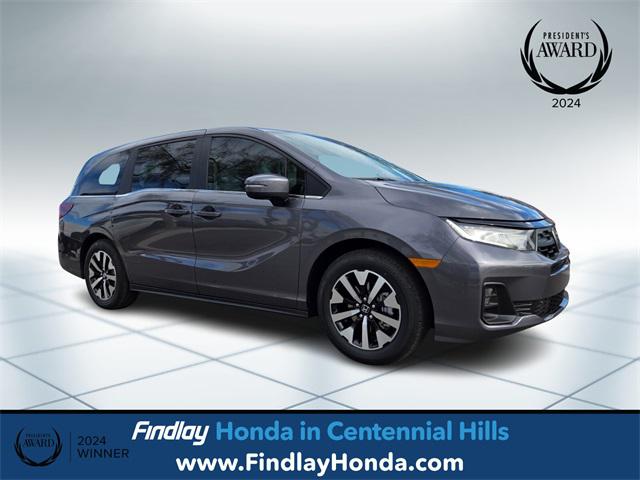 Modern Steel Metallic 2026 Honda Odyssey EX-L FWD 10-Speed Automatic 3.5L V6 SOHC i-VTEC 24V19/28 City/Highway MPGALL NEW CABIN AND A/C FILTERS, NEW WIPERS, FRESH OIL CHANGE, 18"" Machine-Finished Alloy Wheels, 3rd row seats: split-bench, 4-Wheel Disc Brakes, 7 Speakers, ABS brakes, Adaptive Cruise Control: Adaptive Cruise Control (ACC) with Low-Speed Follow, Air Conditioning, Alloy wheels, AM/FM radio: SiriusXM, Anti-whiplash front head restraints, Apple CarPlay/Android Auto, Auto High-beam Headlights, Auto-dimming Rear-View mirror, Automatic temperature control, Blind Spot Information (BSI) System warning, Brake assist, Bumpers: body-color, Delay-off headlights, Driver door bin, Driver vanity mirror, Driver's Seat Mounted Armrest, Dual front impact airbags, Dual front side impact airbags, Electronic Stability Control, Exterior Parking Camera Rear, Four wheel independent suspension, Front anti-roll bar, Front Bucket Seats, Front dual zone A/C, Front fog lights, Front reading lights, Fully automatic headlights, Garage door transmitter: HomeLink, Heated door mirrors, Heated Front Bucket Seats, Heated front seats, Illuminated entry, Knee airbag, Lane departure: Lane Keeping Assist System (LKAS) active, Leather steering wheel, Leather-Trimmed Seats, Low tire pressure warning, Memory seat, Occupant sensing airbag, Outside temperature display, Overhead airbag, Overhead console, Panic alarm, Passenger door bin, Passenger seat mounted armrest, Passenger vanity mirror, Power door mirrors, Power driver seat, Power Liftgate, Power moonroof, Power passenger seat, Power steering, Power windows, Radio data system, Radio: 160-Watt AM/FM/HD/SiriusXM Audio System, Rear air conditioning, Rear anti-roll bar, Rear reading lights, Rear seat center armrest, Rear window defroster, Rear window wiper, Reclining 3rd row seat, Remote keyless entry, Security system, Speed control, Speed-sensing steering, Speed-Sensitive Wipers, Split folding rear seat, Spoiler, Steering wheel mounted audio controls, Tachometer, Telescoping steering wheel, Tilt steering wheel, Traction control, Trip computer, Turn signal indicator mirrors, Variably intermittent wipers.