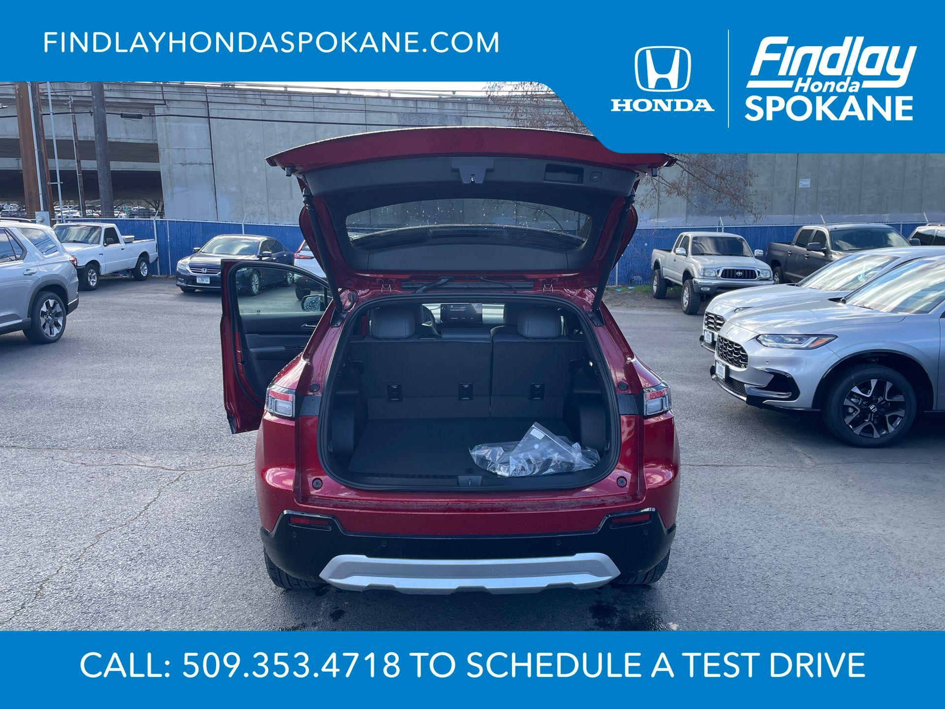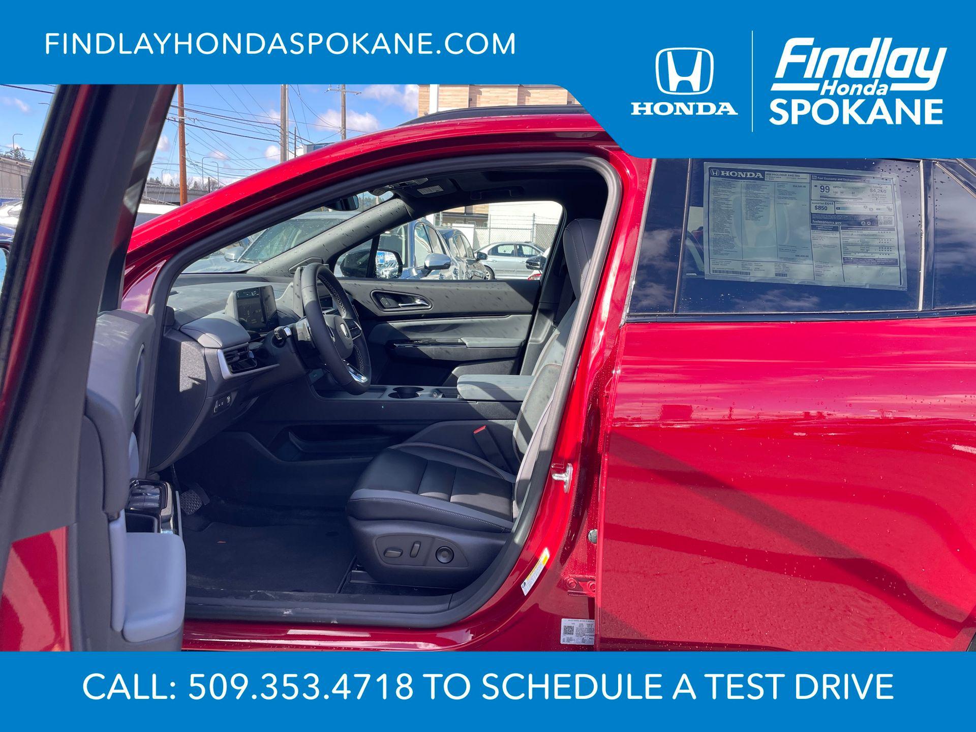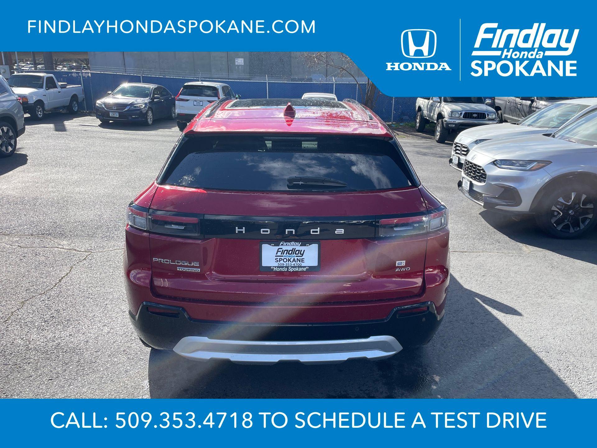2026 Honda Prologue Touring AWDFriends, family, and neighbors have chosen us time and time again to be their dealer. Our simple and easy process, market aggressive pricing, and friendly knowledgeable staff are all reasons why. Come see for yourself why we are the top rated dealer in Spokane. Our process is designed to be easy, give you choices, and save you time. Our pressure free buying process allows you to see the quote you want. We give every customer multiple different monthly payments and down payments all on one sheet, so you can choose the one that best fits your budget. Come see how easy it is to purchase a car, truck, SUV from Findlay Honda Spokane. This Honda Prologue is equipped with these features: 12 Speakers, 19"" x 8.5"" Alloy Wheels, 4-Wheel Disc Brakes, ABS brakes, Air Conditioning, Alloy wheels, AM/FM radio: SiriusXM, Apple CarPlay/Android Auto, Auto High-beam Headlights, Auto-dimming Rear-View mirror, Automatic temperature control, Bose Premium Audio System, Brake assist, Bumpers: body-color, Compass, Delay-off headlights, Driver door bin, Driver vanity mirror, Dual front impact airbags, Dual front side impact airbags, Electronic Stability Control, Emergency communication system: HondaLink connected by OnStar, Exterior Parking Camera Rear, Four wheel independent suspension, Front anti-roll bar, Front Bucket Seats, Front Center Armrest, Front dual zone A/C, Front fog lights, Front reading lights, Fully automatic headlights, Garage door transmitter: HomeLink, Heated door mirrors, Heated Front Bucket Seats, Heated front seats, Illuminated entry, Knee airbag, Lane departure: Lane Keeping Assist System (LKAS) active, Leather Seat Trim, Leather steering wheel, Low tire pressure warning, Memory seat, Navigation System, Occupant sensing airbag, Outside temperature display, Overhead airbag, Overhead console, Panic alarm, Passenger door bin, Passenger vanity mirror, Power door mirrors, Power driver seat, Power Liftgate, Power moonroof, Power passenger seat, Power steering, Power windows, Rear anti-roll bar, Rear reading lights, Rear seat center armrest, Rear window defroster, Rear window wiper, Remote keyless entry, Speed control, Split folding rear seat, Spoiler, Steering wheel mounted audio controls, Telescoping steering wheel, Tilt steering wheel, Traction control, Trip computer, Turn signal indicator mirrors, and Variably intermittent wipers.Scarlet Red Metallic108/90 City/Highway MPG Price includes: $8000 - Sales Credit. Exp. 04/30/2026