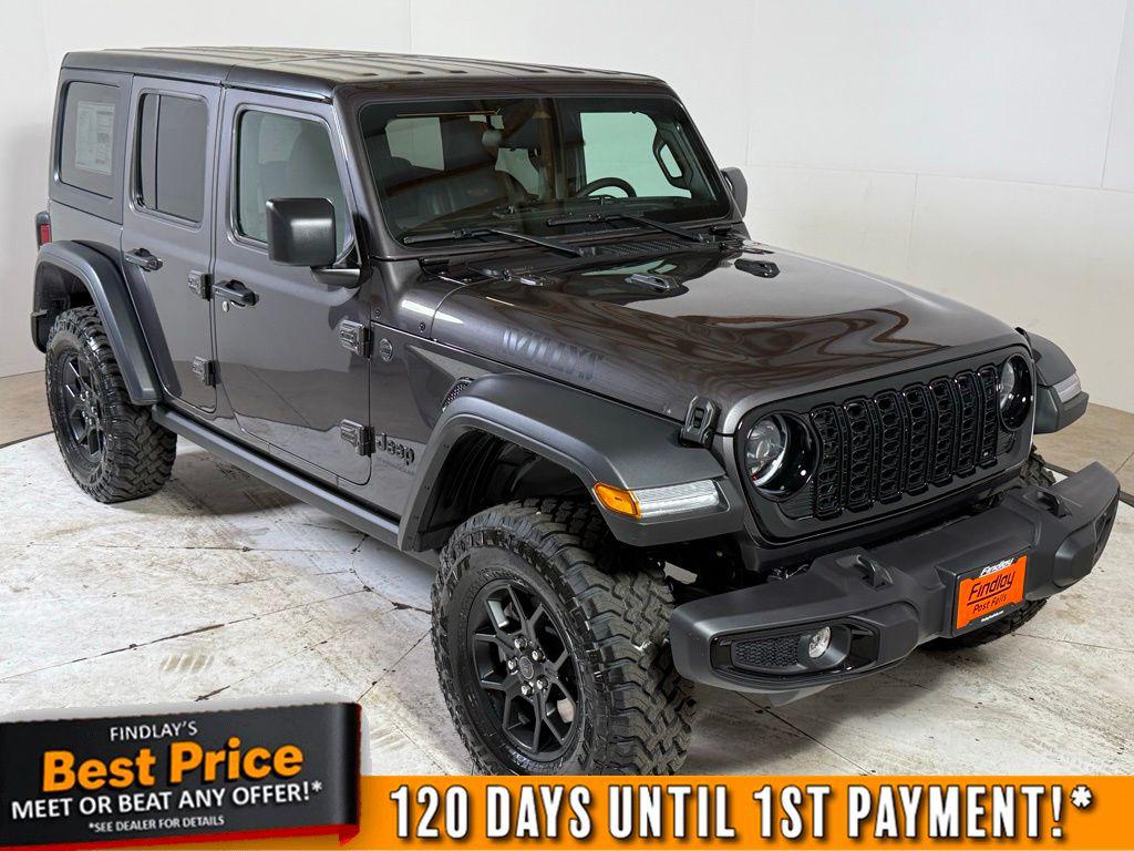 ranite Crystal Metallic Clearcoat 2026 Jeep Wrangler Willys 4WD 8-Speed Automatic 2.0L I4 DOHC MyFlexCare Service, 2 Years/2 Oil Changes/2 Tire Rotations, Android Auto, Apple CarPlay, 2-Door Passive Entry, Front Door Locks, 4-Wheel Drive Swing Gate Decal, 4.10 Rear Axle Ratio, Advanced Brake Assist, Air Filtering, Alpine Premium Audio System, Automatic Headlamps, Auxiliary Switches, Black Grille, Class II Receiver Hitch, Cluster 7.0"" TFT Color Display, Convenience Group, Conventional Differential Front Axle, Corning Gorilla Glass, Dana M210 Wide HD Tube Front Axle, Dana M220 Wide Rear Axle, Daytime Running Lamps LED Accents, Deep Tint Sunscreen Windows, E-Locker Rear Axle, Emergency/Assistance Call, Enhanced Adaptive Cruise Control, Front LED Fog Lamps, Full Speed Forward Collision Warning Plus, Heated Front Seats, Heated Steering Wheel, Injection Molded Black Rear Bumper, LED Premium Reflector Headlamps, Molded in Color Rubicon Highline Flare, MOPAR All-Weather Floor Mats, Off-Road Plus Mode, Power Heated Mirrors, Premium Wrapped Steering Wheel, Quick Order Package 22W Willys, Remote Start System, Security Alarm, Universal Garage Door Opener, Wheels: 17"" x 7.5"" Painted Black, Willy's Suspension, Willys Hood Decal.This Jeep Wrangler is equipped with the following features: Convenience Group (2-Door Passive Entry, Front Door Locks, Air Filtering, Cluster 7.0"" TFT Color Display, Emergency/Assistance Call, Heated Front Seats, Heated Steering Wheel, and Universal Garage Door Opener), Quick Order Package 22W Willys (4-Wheel Drive Swing Gate Decal, 4.10 Rear Axle Ratio, Advanced Brake Assist, Automatic Headlamps, Auxiliary Switches, Black Grille, Class II Receiver Hitch, Conventional Differential Front Axle, Corning Gorilla Glass, Dana M210 Wide HD Tube Front Axle, Dana M220 Wide Rear Axle, Daytime Running Lamps LED Accents, Deep Tint Sunscreen Windows, E-Locker Rear Axle, Enhanced Adaptive Cruise Control, Front LED Fog Lamps, Full Speed Forward Collision Warning Plus, Injection Molded Black Rear Bumper, LED Premium Reflector Headlamps, Molded in Color Rubicon Highline Flare, MOPAR All-Weather Floor Mats, Off-Road Plus Mode, Power Heated Mirrors, Premium Wrapped Steering Wheel, Security Alarm, Wheels: 17"" x 7.5"" Painted Black, Willy's Suspension, and Willys Hood Decal), Alpine Premium Audio System, Remote Start System, 4-Wheel Disc Brakes, 8 Speakers, ABS brakes, Air Conditioning, AM/FM radio: SiriusXM with 360L, Apple CarPlay/Android Auto, Aux Battery, Black 3-Piece Hard Top, Black MOPAR Perforated Leather, Brake assist, Cloth Low-Back Bucket Seats, Compass, Delay-off headlights, Driver door bin, Driver vanity mirror, Dual front impact airbags, Dual front side impact airbags, Electronic Stability Control, Freedom Panel Storage Bag, Front anti-roll bar, Front Bucket Seats, Front Center Armrest w/Storage, Front fog lights, Front reading lights, Illuminated entry, Integrated roll-over protection, Low tire pressure warning, MOPAR Cargo Tub Liner, MOPAR Hardtop Headliner, MOPAR Hinge-Gate Reinforcement, MOPAR Multi-Function Accessory Rail, MOPAR Plastic Door Sill Guards, Normal Duty Suspension, Occupant sensing airbag, Outside temperature display, Overhead airbag, Panic alarm, ParkView Rear Back-Up Camera, Passenger door bin, Passenger vanity mirror, Power steering, Power windows, Radio data system, Rear anti-roll bar, Rear reading lights, Rear Window Defroster, Rear Window Wiper/Washer, Remote keyless entry, Speed control, Split folding rear seat, Steering wheel mounted audio controls, Stop-Start Dual Battery System, Tachometer, Telescoping steering wheel, Tilt steering wheel, Traction control, Trip computer, Variably intermittent wipers, and Wheels: 17"" x 7.5"" Black Steel Styled. Price includes: $1500 - 2026 National Select Inventory Bonus Cash . Exp. 01/05/2026