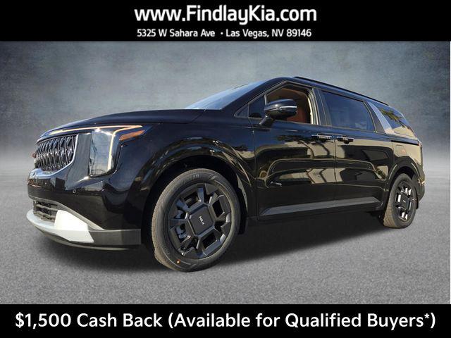 Welcome to Findlay Kia on Sahara Ave in Las Vegas. This Carnival Hybrid is equipped with the following options: 1.6L I4 DGI Hybrid Turbocharged DOHC 16V LEV3-SULEV30, 3rd row seats: split-bench, 4-Wheel Disc Brakes, 8 Speakers, ABS brakes, Air Conditioning, Alloy wheels, AM/FM radio: SiriusXM, Apple CarPlay & Android Auto, Artificial Leather Seat Trim, Auto High-beam Headlights, Automatic temperature control, Brake assist, Bumpers: body-color, Compass, Delay-off headlights, Driver door bin, Driver vanity mirror, Dual front impact airbags, Dual front side impact airbags, Electronic Stability Control, Emergency communication system, Exterior Parking Camera Rear, Four wheel independent suspension, Front anti-roll bar, Front Bucket Seats, Front Center Armrest, Front dual zone A/C, Front reading lights, Fully automatic headlights, Heated door mirrors, Heated Front Bucket Seats, Heated front seats, Illuminated entry, Knee airbag, Leather Shift Knob, Leather steering wheel, Low tire pressure warning, Memory seat, Navigation System, Occupant sensing airbag, Outside temperature display, Overhead airbag, Overhead console, Panic alarm, Passenger door bin, Passenger vanity mirror, Power door mirrors, Power driver seat, Power Liftgate, Power passenger seat, Power steering, Power windows, Rear air conditioning, Rear anti-roll bar, Rear reading lights, Rear window defroster, Rear window wiper, Reclining 3rd row seat, Remote keyless entry, Security system, Speed control, Speed-sensing steering, Split folding rear seat, Spoiler, Steering wheel mounted audio controls, Tachometer, Telescoping steering wheel, Tilt steering wheel, Traction control, Trip computer, Turn signal indicator mirrors, Variably intermittent wipers, and Wheels: 19"" Black Alloy.1.6L I4 DGI Hybrid Turbocharged DOHC 16V LEV3-SULEV30.34/31 City/Highway MPGThis Carnival Hybrid is equipped with Bluetooth, Backup Camera, along with the following options: Price includes: $1500 - KFA Dealer Choice Program: $1500 discount and 5.25% APR for 36 months. $30.08 per $1000 financed. Available to well qualified buyers who finance through Kia Finance America. 506. Exp. 03/31/2026