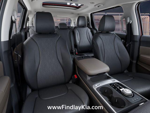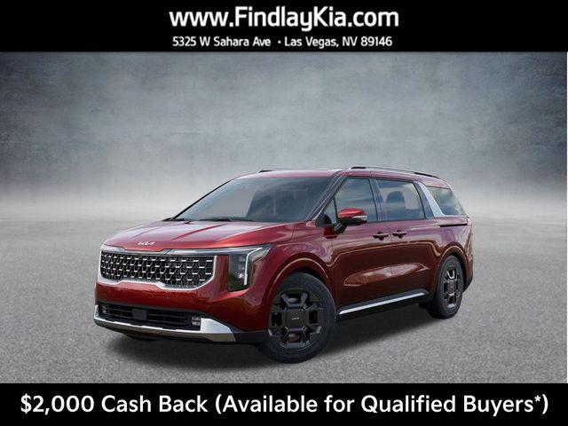 Welcome to Findlay Kia on Sahara Ave in Las Vegas. This Carnival Hybrid is equipped with the following options: 1.6L I4 DGI Hybrid Turbocharged DOHC 16V LEV3-SULEV30, 3rd row seats: split-bench, 4-Wheel Disc Brakes, 8 Speakers, ABS brakes, Air Conditioning, All Weather Floor Mats (8-Passenger), Alloy wheels, AM/FM radio: SiriusXM, Apple CarPlay & Android Auto, Artificial Leather Seat Trim, Auto High-beam Headlights, Automatic temperature control, Brake assist, Bumpers: body-color, Compass, Delay-off headlights, Driver door bin, Driver vanity mirror, Dual front impact airbags, Dual front side impact airbags, Electronic Stability Control, Emergency communication system, Exterior Parking Camera Rear, Four wheel independent suspension, Front anti-roll bar, Front Bucket Seats, Front Center Armrest, Front dual zone A/C, Front fog lights, Front reading lights, Fully automatic headlights, Heated and Ventilated Front Bucket Seats, Heated door mirrors, Heated front seats, Illuminated entry, Knee airbag, Leather Shift Knob, Leather steering wheel, Low tire pressure warning, Memory seat, Navigation System, Occupant sensing airbag, Outside temperature display, Overhead airbag, Overhead console, Panic alarm, Passenger door bin, Passenger vanity mirror, Power 2nd-Row Moonroof, Power door mirrors, Power driver seat, Power Liftgate, Power moonroof, Power passenger seat, Power steering, Power windows, Radio: : Navigation System with SiriusXM, Rain sensing wipers, Rear air conditioning, Rear anti-roll bar, Rear reading lights, Rear window defroster, Rear window wiper, Reclining 3rd row seat, Remote keyless entry, Security system, Speed control, Speed-sensing steering, Split folding rear seat, Spoiler, Steering wheel mounted audio controls, Tachometer, Telescoping steering wheel, Tilt steering wheel, Traction control, Trip computer, Turn signal indicator mirrors, Variably intermittent wipers, Ventilated front seats, Wheels: 19"" Black Alloy, and Wheels: 19"" Black D-Cut Customizing.1.6L I4 DGI Hybrid Turbocharged DOHC 16V LEV3-SULEV30.34/31 City/Highway MPGThis Carnival Hybrid is equipped with Bluetooth, Backup Camera, along with the following options: Price includes: $2000 - KFA Dealer Choice Program: $2000 discount and 5.25% APR for 36 months. $30.08 per $1000 financed. Available to well qualified buyers who finance through Kia Finance America. 506. Exp. 03/31/2026