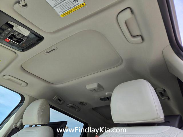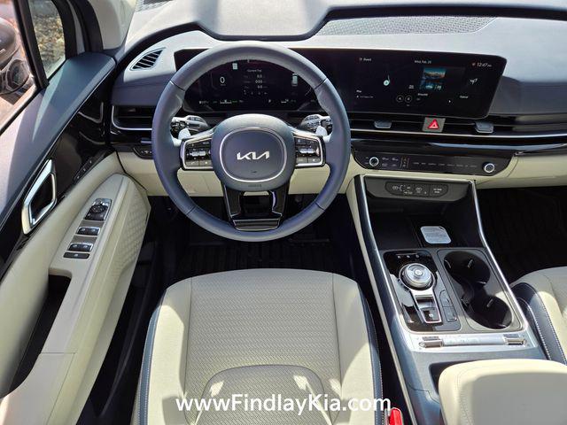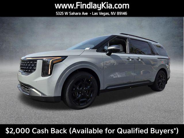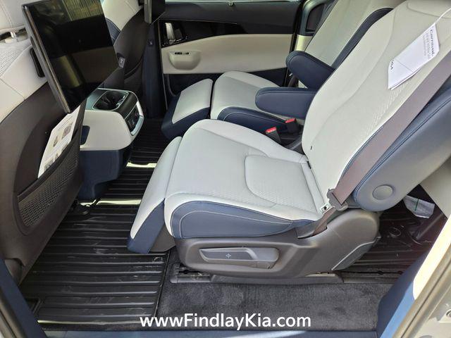 Welcome to Findlay Kia on Sahara Ave in Las Vegas. This Carnival Hybrid is equipped with the following options: Rear Seat Entertainment Package (Dual Screen Rear Seat Entertainment System), SX Prestige Seat Package (2nd Row Laminated Windows, Ambient Lighting, and High Glossy Interior Trim), 1.6L I4 DGI Hybrid Turbocharged DOHC 16V LEV3-SULEV30, 12 Speakers, 3rd row seats: split-bench, 4-Wheel Disc Brakes, ABS brakes, Air Conditioning, Alloy wheels, AM/FM radio: SiriusXM, Apple CarPlay & Android Auto, Auto High-beam Headlights, Auto-dimming Rear-View mirror, Automatic temperature control, Brake assist, Bumpers: body-color, Cargo Net, Compass, Delay-off headlights, Driver door bin, Driver vanity mirror, Dual front impact airbags, Dual front side impact airbags, Electronic Stability Control, Emergency communication system, Exterior Parking Camera Rear, Four wheel independent suspension, Front anti-roll bar, Front Bucket Seats, Front Center Armrest, Front dual zone A/C, Front fog lights, Front reading lights, Fully automatic headlights, Garage door transmitter: HomeLink, Heads-Up Display, Heated door mirrors, Heated front seats, Heated steering wheel, Illuminated entry, Knee airbag, Leather Seat Trim, Leather Shift Knob, Leather steering wheel, Low tire pressure warning, Luxury Carpeted Floor Mats, Memory seat, Navigation System, Occupant sensing airbag, Outside temperature display, Overhead airbag, Overhead console, Panic alarm, Passenger door bin, Passenger vanity mirror, Power 2nd-Row Moonroof, Power door mirrors, Power driver seat, Power Liftgate, Power moonroof, Power passenger seat, Power steering, Power windows, Rain sensing wipers, Rear air conditioning, Rear anti-roll bar, Rear reading lights, Rear window defroster, Rear window wiper, Reclining 3rd row seat, Remote keyless entry, Security system, Small First Aid Kit, Speed control, Speed-sensing steering, Split folding rear seat, Spoiler, Steering wheel mounted audio controls, Tachometer, Telescoping steering wheel, Tilt steering wheel, Traction control, Trip computer, Turn signal indicator mirrors, Variably intermittent wipers, Ventilated front seats, Wheel Locks, and Wheels: 19"" Black D-Cut Customizing.1.6L I4 DGI Hybrid Turbocharged DOHC 16V LEV3-SULEV30.34/31 City/Highway MPGThis Carnival Hybrid is equipped with Bluetooth, Backup Camera, along with the following options: Price includes: $2000 - KFA Dealer Choice Program: $2000 discount and 5.25% APR for 36 months. $30.08 per $1000 financed. Available to well qualified buyers who finance through Kia Finance America. 506. Exp. 03/31/2026