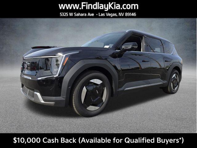 Welcome to Findlay Kia on Sahara Ave in Las Vegas. This EV9 is equipped with the following options: ABS brakes, Active Cruise Control, Alloy wheels, Electronic Stability Control, Front dual zone A/C, Heated door mirrors, Heated front seats, Illuminated entry, Low tire pressure warning, Navigation System, Power Liftgate, Power moonroof, Remote keyless entry, Traction control, 3rd row seats: split-bench, 4-Wheel Disc Brakes, 8 Speakers, Air Conditioning, AM/FM radio, Apple CarPlay & Android Auto, Auto High-beam Headlights, Auto-dimming Rear-View mirror, Automatic temperature control, Brake assist, Bumpers: body-color, Delay-off headlights, Driver door bin, Driver vanity mirror, Dual front impact airbags, Dual front side impact airbags, Emergency communication system: 911 Connect, Exterior Parking Camera Rear, Four wheel independent suspension, Front anti-roll bar, Front Bucket Seats, Front Center Armrest w/Storage, Front reading lights, Fully automatic headlights, Garage door transmitter: HomeLink, Heated steering wheel, Knee airbag, Memory seat, Occupant sensing airbag, Outside temperature display, Overhead airbag, Overhead console, Panic alarm, Passenger door bin, Passenger vanity mirror, Power door mirrors, Power driver seat, Power passenger seat, Power steering, Power windows, Radio data system, Rain sensing wipers, Rear air conditioning, Rear anti-roll bar, Rear reading lights, Rear seat center armrest, Rear window defroster, Rear window wiper, Reclining 3rd row seat, Security system, Speed control, Speed-sensing steering, Split folding rear seat, Spoiler, Steering wheel memory, Steering wheel mounted audio controls, Telescoping steering wheel, Tilt steering wheel, Trip computer, Turn signal indicator mirrors, Variably intermittent wipers, and Ventilated front seats.ABS brakes, Active Cruise Control, Alloy wheels, Electronic Stability Control, Front dual zone A/C, Heated door mirrors, Heated front seats, Illuminated entry, Low tire pressure warning, Navigation System, Power Liftgate, Power moonroof, Remote keyless entry, Traction control, 3rd row seats: split-bench, 4-Wheel Disc Brakes, 8 Speakers, Air Conditioning, AM/FM radio, Apple CarPlay & Android Auto, Auto High-beam Headlights, Auto-dimming Rear-View mirror, Automatic temperature control, Brake assist, Bumpers: body-color, Delay-off headlights, Driver door bin, Driver vanity mirror, Dual front impact airbags, Dual front side impact airbags, Emergency communication system: 911 Connect, Exterior Parking Camera Rear, Four wheel independent suspension, Front anti-roll bar, Front Bucket Seats, Front Center Armrest w/Storage, Front reading lights, Fully automatic headlights, Garage door transmitter: HomeLink, Heated steering wheel, Knee airbag, Memory seat, Occupant sensing airbag, Outside temperature display, Overhead airbag, Overhead console, Panic alarm, Passenger door bin, Passenger vanity mirror, Power door mirrors, Power driver seat, Power passenger seat, Power steering, Power windows, Radio data system, Rain sensing wipers, Rear air conditioning, Rear anti-roll bar, Rear reading lights, Rear seat center armrest, Rear window defroster, Rear window wiper, Reclining 3rd row seat, Security system, Speed control, Speed-sensing steering, Split folding rear seat, Spoiler, Steering wheel memory, Steering wheel mounted audio controls, Telescoping steering wheel, Tilt steering wheel, Trip computer, Turn signal indicator mirrors, Variably intermittent wipers, Ventilated front seats, ABS brakes, Active Cruise Control, Alloy wheels, Electronic Stability Control, Front dual zone A/C, Heated door mirrors, Heated front seats, Illuminated entry, Low tire pressure warning, Navigation System, Power Liftgate, Power moonroof, Remote keyless entry, Traction control.94/75 City/Highway MPGThis EV9 is equipped with Bluetooth, Backup Camera, along with the following options: Price includes: $10000 - Kia Customer Cash. Exp. 03/31/2026