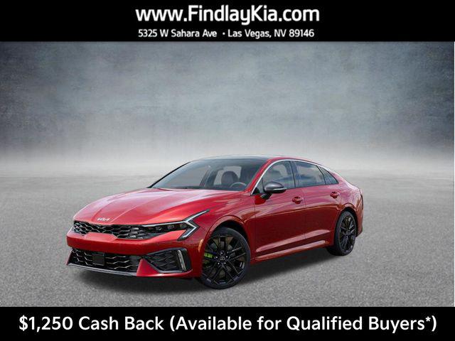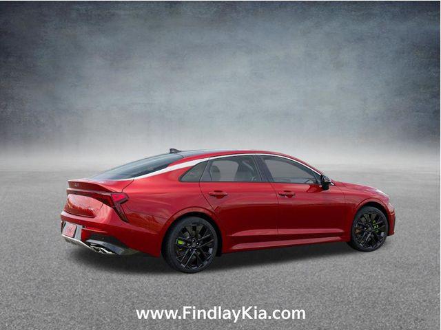 Welcome to Findlay Kia on Sahara Ave in Las Vegas. This K5 is equipped with the following options: GT1 Package (12.3"" Instrument Display, Active Sound Design, Auto Up/Down Front Passenger and Rear Windows, Blind-Spot View Monitor, Bose Premium Audio, Heated Steering Wheel, Memory Driver's Seat and Outside Mirrors, Parking Collision Avoidance-Assist - Reverse, Parking Distance Warning - Side, Power Folding Mirrors, Power Front Passenger Seat, Smartphone Digital Key, Surround View Monitor, Ventilated Front Seats, and Wheels: 19"" x 8.0J Gloss Black Custom Alloy), 4-Wheel Disc Brakes, 6 Speakers, ABS brakes, Air Conditioning, Alloy wheels, AM/FM radio: SiriusXM, Auto High-beam Headlights, Automatic temperature control, Brake assist, Bumpers: body-color, Delay-off headlights, Driver door bin, Driver vanity mirror, Dual front impact airbags, Dual front side impact airbags, Electronic Stability Control, Emergency communication system: Kia Connect (includes 1 year free trial), Four wheel independent suspension, Front anti-roll bar, Front Bucket Seats, Front Center Armrest, Front dual zone A/C, Front fog lights, Front reading lights, Fully automatic headlights, Heated door mirrors, Heated front seats, Heated Sport Bucket Seats, Illuminated entry, Knee airbag, Leather Shift Knob, Leather steering wheel, Low tire pressure warning, Navigation System, Occupant sensing airbag, Outside temperature display, Overhead airbag, Overhead console, Panic alarm, Passenger door bin, Passenger vanity mirror, Power door mirrors, Power driver seat, Power moonroof, Power steering, Power windows, Radio data system, Radio: AM/FM Audio System, Rear anti-roll bar, Rear reading lights, Rear seat center armrest, Rear side impact airbag, Rear window defroster, Remote keyless entry, Security system, Speed control, Speed-sensing steering, Split folding rear seat, Sport steering wheel, Steering wheel mounted audio controls, SynTex Seat Trim, Tachometer, Telescoping steering wheel, Tilt steering wheel, Traction control, Trip computer, Turn signal indicator mirrors, Variably intermittent wipers, and Wheels: 19"" x 8.0J Gloss Black Machined Finish Alloy.23/33 City/Highway MPGThis K5 is equipped with Bluetooth, Backup Camera, along with the following options: Price includes: $1250 - KFA Dealer Choice Program: $1250 discount and 5.25% APR for 36 months. $30.08 per $1000 financed. Available to well qualified buyers who finance through Kia Finance America. 506. Exp. 05/04/2026