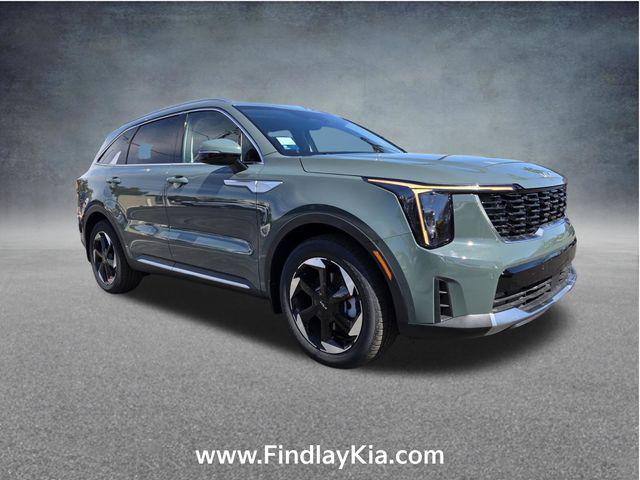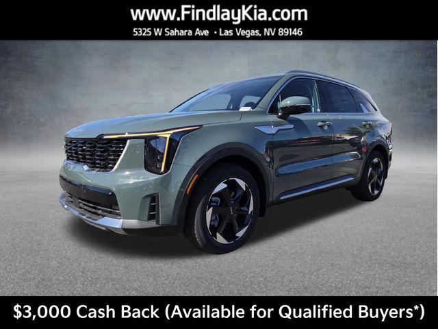 Welcome to Findlay Kia on Sahara Ave in Las Vegas. This Sorento Hybrid is equipped with the following options: 1.6L Turbo GDI 4-Cylinder, 3rd row seats: split-bench, 4-Wheel Disc Brakes, 6 Speakers, ABS brakes, Air Conditioning, All Weather Floor Mats, Alloy wheels, AM/FM radio: SiriusXM, Apple CarPlay & Android Auto, Auto High-beam Headlights, Auto-Dimming Mirror with HomeLink, Auto-dimming Rear-View mirror, Automatic temperature control, Brake assist, Bumpers: body-color, Delay-off headlights, Driver door bin, Driver vanity mirror, Dual front impact airbags, Dual front side impact airbags, Electronic Stability Control, Emergency communication system: 911 Connect, Exterior Parking Camera Rear, Four wheel independent suspension, Front anti-roll bar, Front Bucket Seats, Front Center Armrest, Front dual zone A/C, Front fog lights, Front reading lights, Fully automatic headlights, Heated door mirrors, Heated Front Bucket Seats, Heated front seats, Illuminated entry, Knee airbag, Leather steering wheel, Low tire pressure warning, Navigation System, Occupant sensing airbag, Outside temperature display, Overhead airbag, Overhead console, Panic alarm, Passenger door bin, Passenger vanity mirror, Power door mirrors, Power driver seat, Power Liftgate, Power passenger seat, Power steering, Power windows, Radio data system, Radio: AM/FM/SiriusXM Audio System, Rear anti-roll bar, Rear reading lights, Rear seat center armrest, Rear side impact airbag, Rear window defroster, Rear window wiper, Remote keyless entry, Security system, Small First Aid Kit, Speed control, Speed-sensing steering, Split folding rear seat, Spoiler, Steering wheel mounted audio controls, SynTex Artificial Leather Seat Trim, Tachometer, Telescoping steering wheel, Tilt steering wheel, Traction control, Trip computer, Turn signal indicator mirrors, Variably intermittent wipers, and Wheels: 19"" Machine-Finished Aero Alloy.1.6L Turbo GDI 4-Cylinder.32/35 City/Highway MPGThis Sorento Hybrid is equipped with Bluetooth, Backup Camera, along with the following options: Price includes: $3000 - KFA Dealer Choice Program: $3000 discount and 5.25% APR for 36 months. $30.08 per $1000 financed. Available to well qualified buyers who finance through Kia Finance America. 506. Exp. 03/31/2026