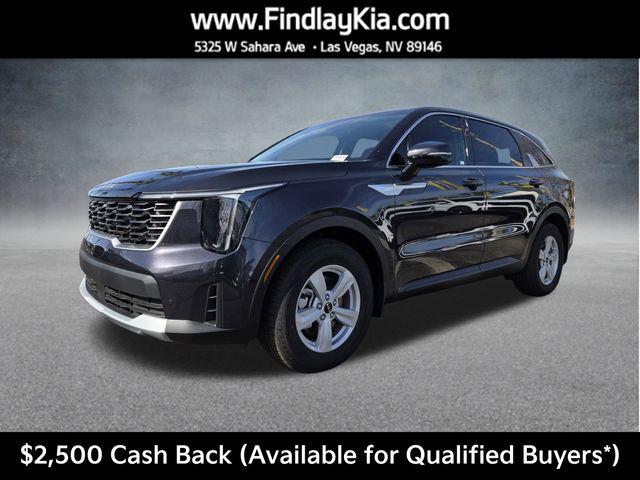 Welcome to Findlay Kia on Sahara Ave in Las Vegas. This Sorento is equipped with the following options: 17"" Alloy Wheels, 3rd row seats: split-bench, 4-Wheel Disc Brakes, 6 Speakers, ABS brakes, Air Conditioning, All Weather Floor Mats, Alloy wheels, AM/FM radio: SiriusXM, Apple CarPlay & Android Auto, Auto High-beam Headlights, Brake assist, Bumpers: body-color, Cloth Seat Trim, Delay-off headlights, Driver door bin, Driver vanity mirror, Dual front impact airbags, Dual front side impact airbags, Electronic Stability Control, Emergency communication system: 911 Connect, Exterior Parking Camera Rear, Four wheel independent suspension, Front anti-roll bar, Front Bucket Seats, Front Center Armrest, Front reading lights, Fully automatic headlights, Heated door mirrors, Illuminated entry, Knee airbag, Leather Shift Knob, Leather steering wheel, Low tire pressure warning, Occupant sensing airbag, Outside temperature display, Overhead airbag, Overhead console, Panic alarm, Passenger door bin, Passenger vanity mirror, Power door mirrors, Power steering, Power windows, Radio data system, Radio: AM/FM Standard Sound System, Rear anti-roll bar, Rear reading lights, Rear seat center armrest, Rear side impact airbag, Rear window defroster, Rear window wiper, Remote keyless entry, Security system, Speed control, Speed-sensing steering, Split folding rear seat, Spoiler, Steering wheel mounted audio controls, Tachometer, Telescoping steering wheel, Tilt steering wheel, Traction control, Trip computer, Turn signal indicator mirrors, and Variably intermittent wipers.23/31 City/Highway MPGThis Sorento is equipped with Bluetooth, Backup Camera, along with the following options: Price includes: $2500 - Kia Customer Cash. Exp. 03/31/2026