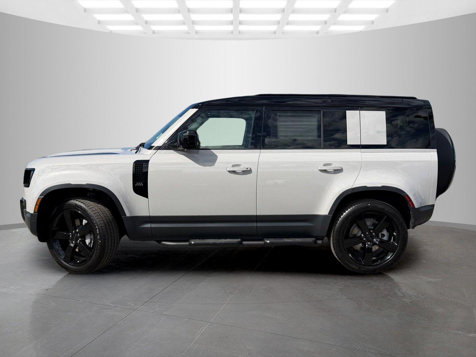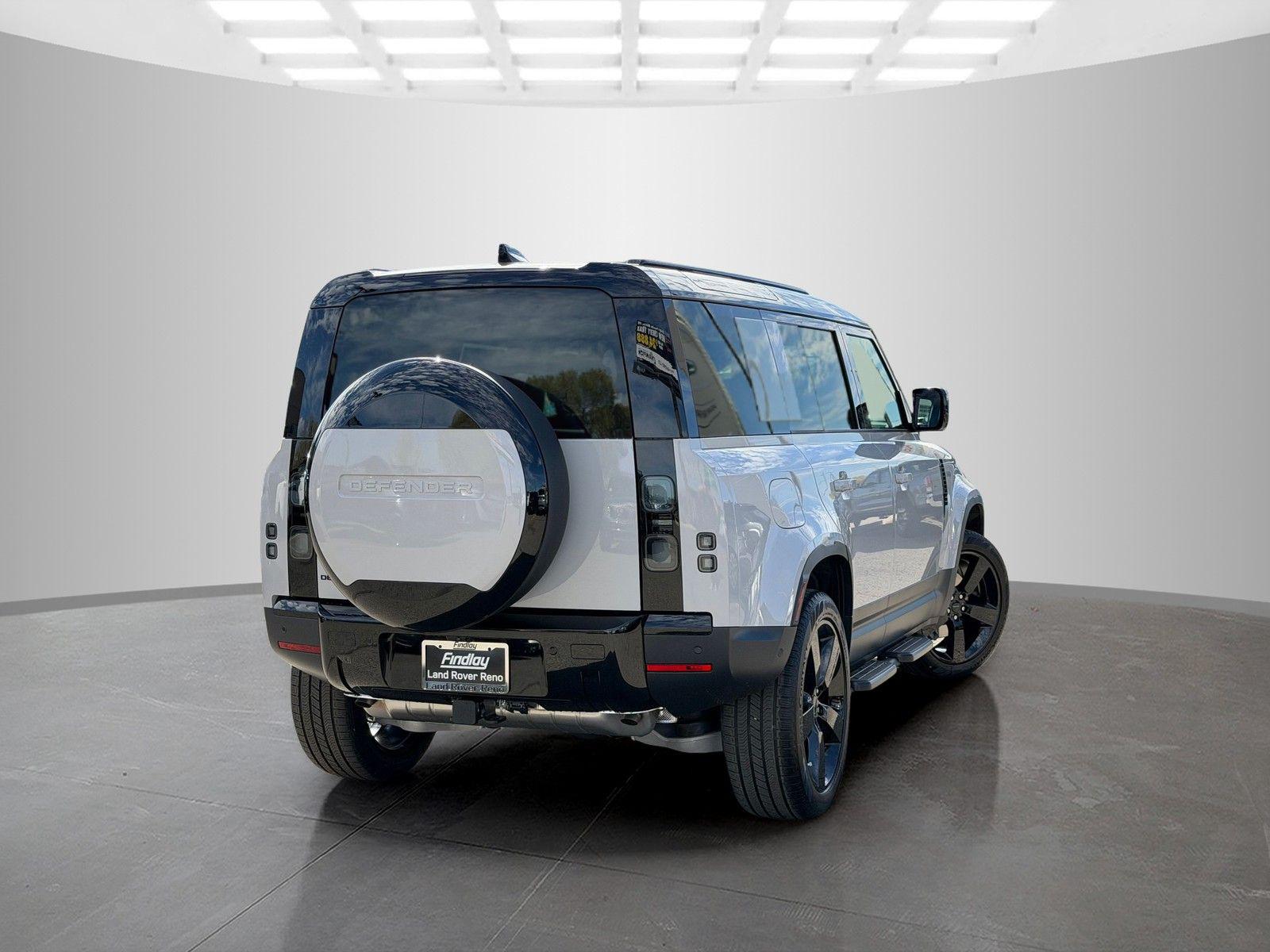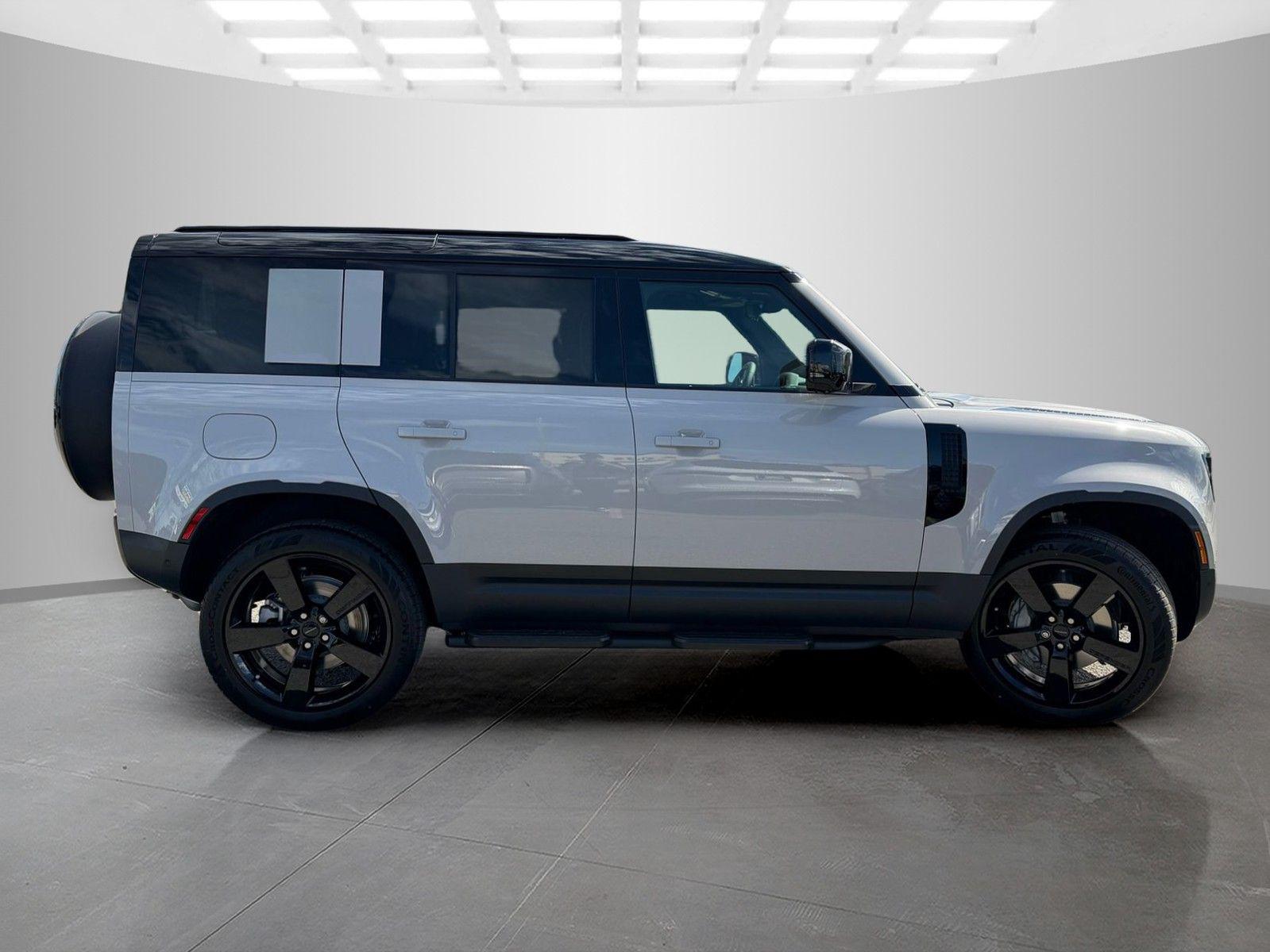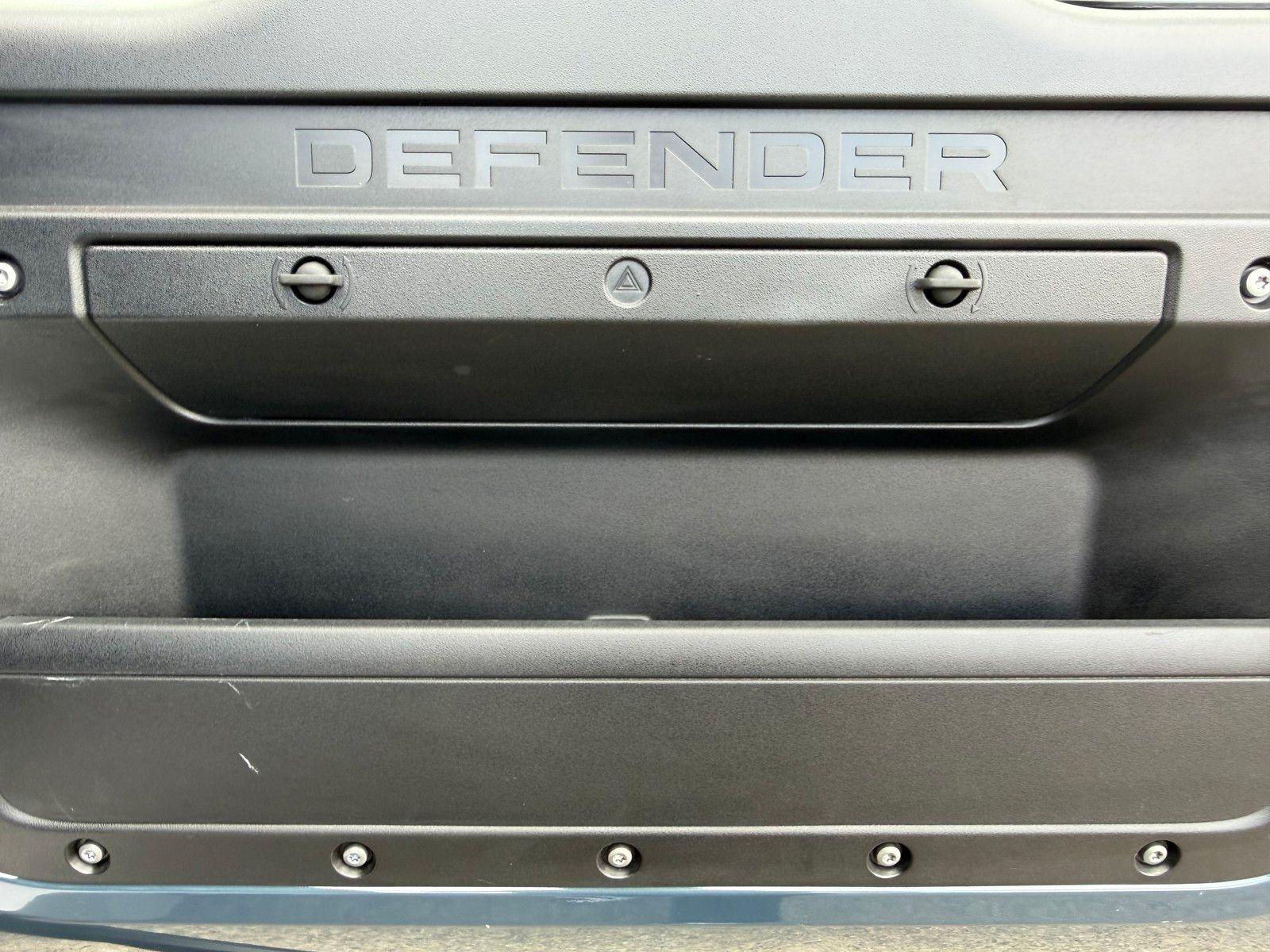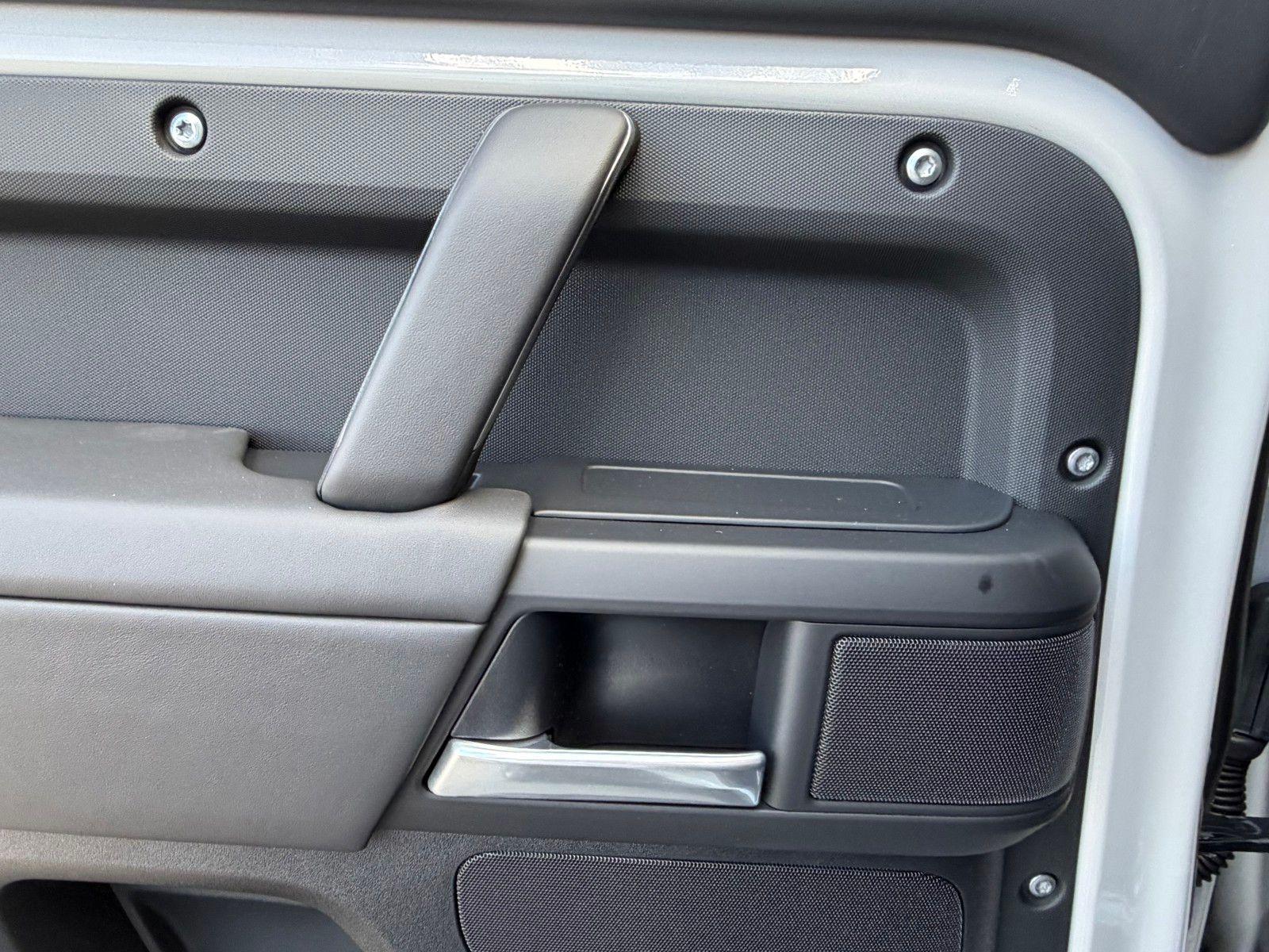 This Land Rover Defender 110 is equipped with the following options and extra equipment: 11 Speakers, 12-Way Heated Electric Memory Front Seats, 4-Wheel Disc Brakes, ABS brakes, Air Conditioning, Alloy wheels, AM/FM radio: SiriusXM, Apple CarPlay & Android Auto, Auto High-beam Headlights, Auto tilt-away steering wheel, Auto-dimming door mirrors, Auto-dimming Rear-View mirror, Automatic temperature control, Brake assist, Bumpers: body-color, Compass, Delay-off headlights, Driver door bin, Driver vanity mirror, Dual front impact airbags, Dual front side impact airbags, Electronic Stability Control, Exterior Parking Camera Rear, Four wheel independent suspension, Front anti-roll bar, Front Bucket Seats, Front Center Armrest, Front dual zone A/C, Front fog lights, Front reading lights, Fully automatic headlights, Garage door transmitter: HomeLink, Heated door mirrors, Heated front seats, Heated steering wheel, Illuminated entry, Low tire pressure warning, Memory seat, Navigation system: Connected Navigation PIVI Pro, Occupant sensing airbag, Outside temperature display, Overhead airbag, Overhead console, Panic alarm, Passenger door bin, Passenger vanity mirror, Power door mirrors, Power driver seat, Power moonroof, Power passenger seat, Power steering, Power windows, Radio data system, Radio: Meridian Sound System, Rain sensing wipers, Rear anti-roll bar, Rear fog lights, Rear reading lights, Rear seat center armrest, Rear window defroster, Rear window wiper, Remote keyless entry, Resist and Resolve Seat Trim, Security system, Speed control, Speed-sensing steering, Speed-Sensitive Wipers, Split folding rear seat, Steering wheel memory, Steering wheel mounted audio controls, Tachometer, Telescoping steering wheel, Tilt steering wheel, Traction control, Trip computer, Variably intermittent wipers, Weather band radio, and Wheels: 19"" Gloss Sparkle Silver Style 6010.AWD 8-Speed Automatic 2.0L I4 DI Turbocharged