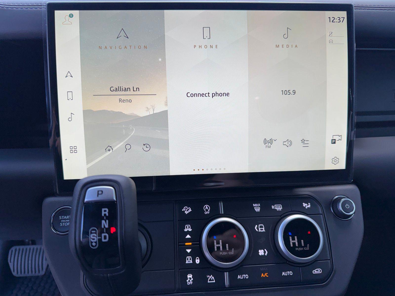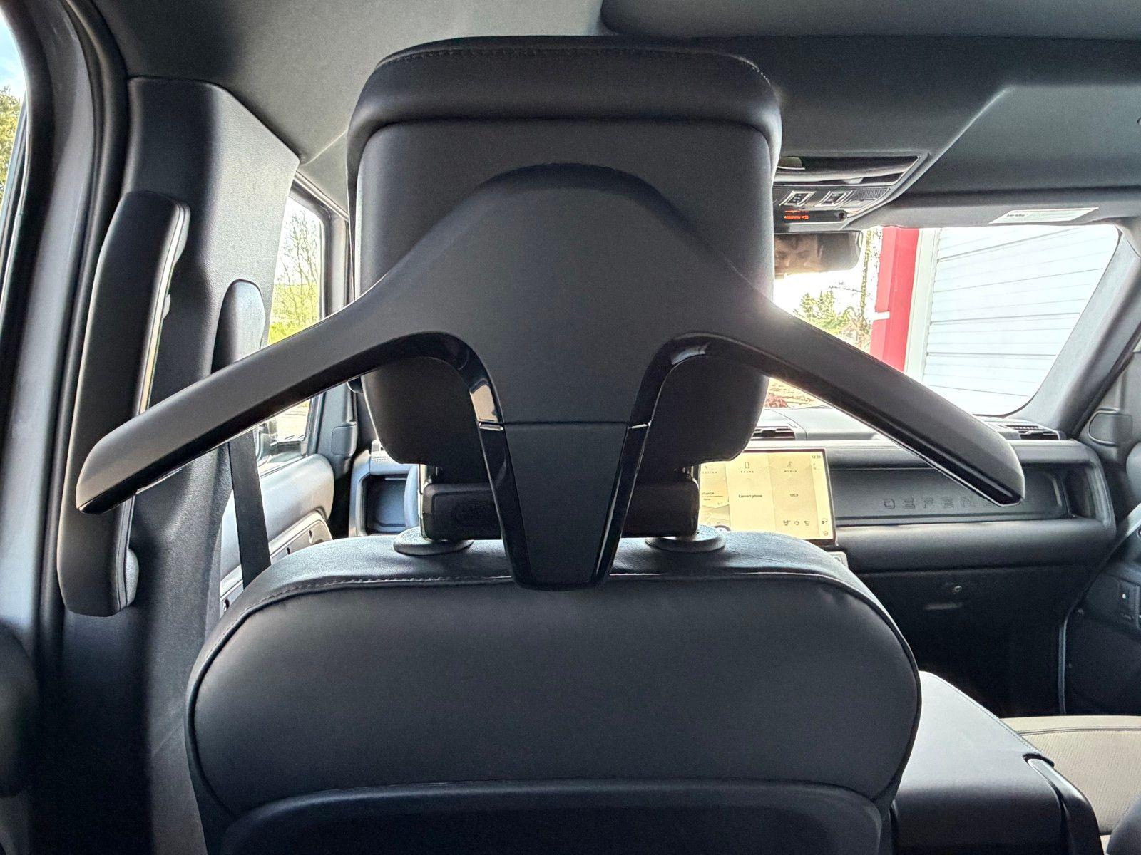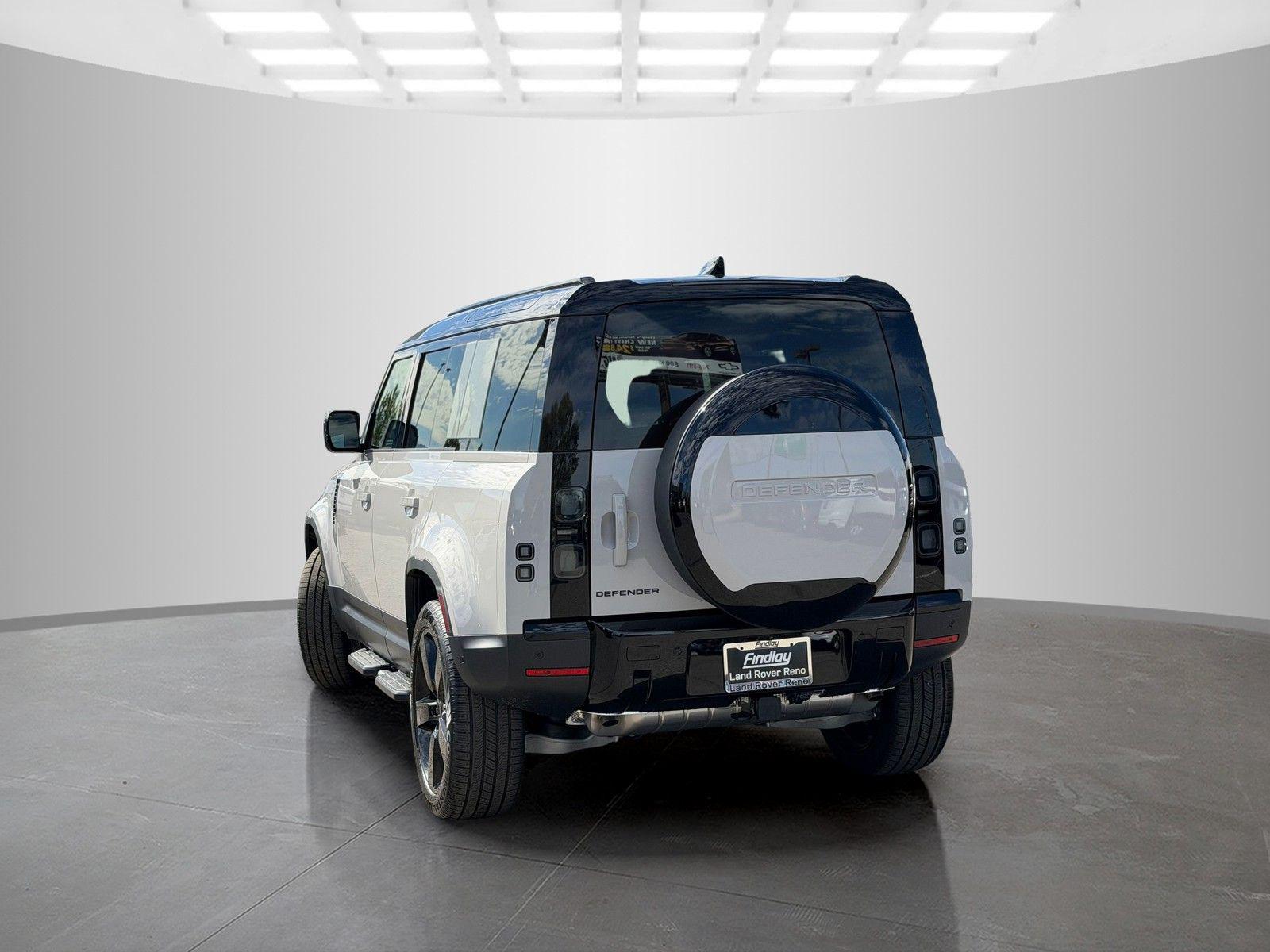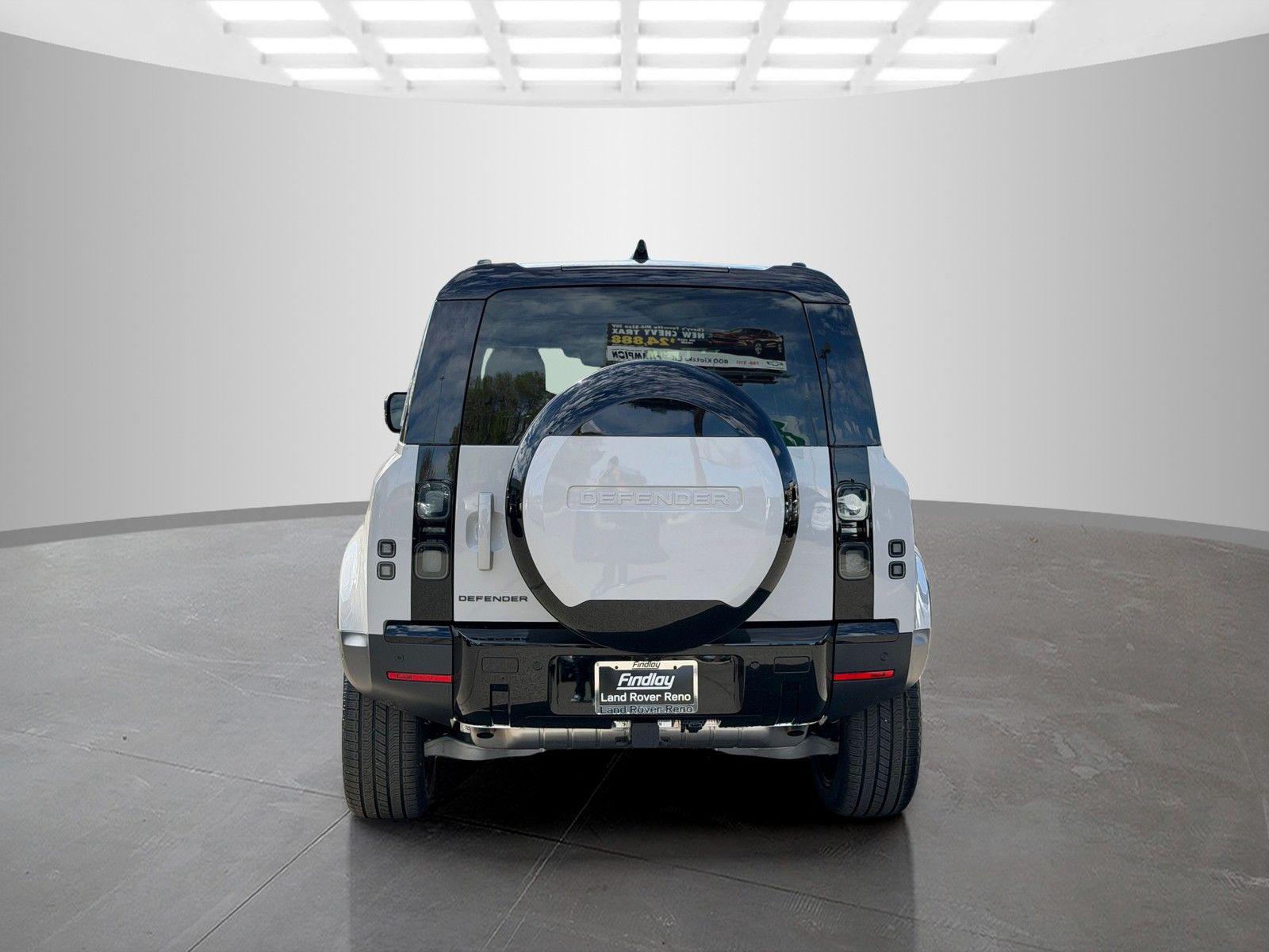 This Land Rover Defender 110 is equipped with the following options and extra equipment: 11 Speakers, 12-Way Heated Electric Memory Front Seats, 4-Wheel Disc Brakes, ABS brakes, Air Conditioning, Alloy wheels, AM/FM radio: SiriusXM, Apple CarPlay & Android Auto, Auto High-beam Headlights, Auto tilt-away steering wheel, Auto-dimming door mirrors, Auto-dimming Rear-View mirror, Automatic temperature control, Brake assist, Bumpers: body-color, Compass, Delay-off headlights, Driver door bin, Driver vanity mirror, Dual front impact airbags, Dual front side impact airbags, Electronic Stability Control, Exterior Parking Camera Rear, Four wheel independent suspension, Front anti-roll bar, Front Bucket Seats, Front Center Armrest, Front dual zone A/C, Front fog lights, Front reading lights, Fully automatic headlights, Garage door transmitter: HomeLink, Heated door mirrors, Heated front seats, Heated steering wheel, Illuminated entry, Low tire pressure warning, Memory seat, Navigation system: Connected Navigation PIVI Pro, Occupant sensing airbag, Outside temperature display, Overhead airbag, Overhead console, Panic alarm, Passenger door bin, Passenger vanity mirror, Power door mirrors, Power driver seat, Power moonroof, Power passenger seat, Power steering, Power windows, Radio data system, Radio: Meridian Sound System, Rain sensing wipers, Rear anti-roll bar, Rear fog lights, Rear reading lights, Rear seat center armrest, Rear window defroster, Rear window wiper, Remote keyless entry, Resist and Resolve Seat Trim, Security system, Speed control, Speed-sensing steering, Speed-Sensitive Wipers, Split folding rear seat, Steering wheel memory, Steering wheel mounted audio controls, Tachometer, Telescoping steering wheel, Tilt steering wheel, Traction control, Trip computer, Variably intermittent wipers, Weather band radio, and Wheels: 19"" Gloss Sparkle Silver Style 6010.AWD 8-Speed Automatic 2.0L I4 DI Turbocharged
