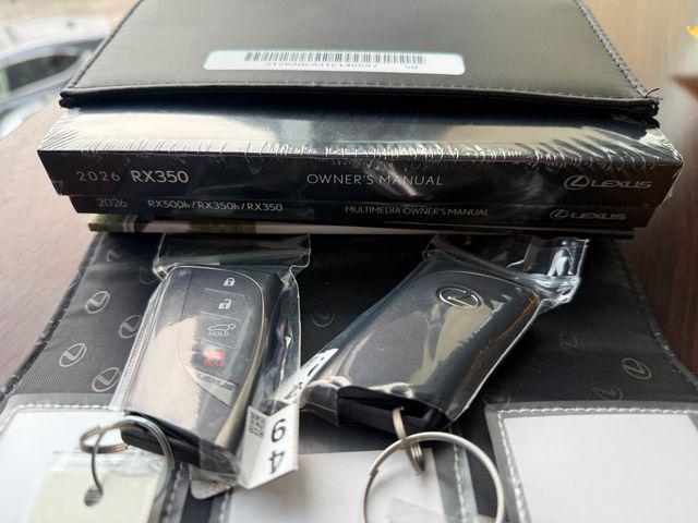 Cloudburst Gra 2026 Lexus RX 350 Premium AWD 8-Speed Automatic with Sequential Shift 2.4L I4 Turbo 12 Speakers, 19"" 5-Spoke Alloy Wheels, 4-Wheel Disc Brakes, ABS brakes, Air Conditioning, Alloy wheels, AM/FM radio: SiriusXM, Anti-whiplash front head restraints, Auto High-beam Headlights, Auto tilt-away steering wheel, Auto-dimming door mirrors, Auto-dimming Rear-View mirror, Automatic temperature control, Brake assist, Bumpers: body-color, Compass, Convenience Package, Delay-off headlights, Digital Key, Driver door bin, Driver vanity mirror, Dual front impact airbags, Dual front side impact airbags, Electronic Stability Control, Emergency communication system: Safety Connect (5-year minimum), Exterior Parking Camera Rear, Four wheel independent suspension, Front anti-roll bar, Front Bucket Seats, Front Center Armrest, Front Cross-Traffic Alert, Front dual zone A/C, Front fog lights, Front reading lights, Fully automatic headlights, Garage door transmitter: HomeLink, Genuine wood console insert, Heated and Ventilated Front Seats, Heated door mirrors, Heated front seats, Heated steering wheel, Illuminated entry, Leather Shift Knob, Leather steering wheel, Lexus Interface with 14"" Touchscreen Display, Lexus Interface with 9.8"" Touchscreen Display, Low tire pressure warning, Memory seat, Navigation System, NuLuxe Seat Trim, Occupant sensing airbag, Outside temperature display, Overhead airbag, Overhead console, Panic alarm, Panoramic View Monitor, Passenger door bin, Passenger vanity mirror, Power door mirrors, Power driver seat, Power Liftgate, Power passenger seat, Power Rear Door with Kick Sensor, Power steering, Power windows, Premium Grade, Radio data system, Radio: 12-Speaker Lexus Premium Sound System, Rain sensing wipers, Rear air conditioning, Rear anti-roll bar, Rear Bumper Applique, Rear reading lights, Rear seat center armrest, Rear side impact airbag, Rear window defroster, Rear window wiper, Remote keyless entry, Security system, Speed control, Speed-sensing steering, Split folding rear seat, Spoiler, Steering wheel memory, Steering wheel mounted audio controls, Tachometer, Telescoping steering wheel, Tilt steering wheel, Traction control, Traffic Jam Assist, Trip computer, Turn signal indicator mirrors, Variably intermittent wipers, Ventilated front seats, Wheel Locks, Wheels: 21"" 20-Spoke Alloy, Wireless Apple CarPlay/Wireless Android Auto.21/28 City/Highway MPG