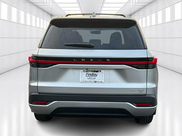 Celestial Silver 2026 Lexus TX 350 Premium AWD 8-Speed Automatic with Sequential Shift 2.4L I4 PDI Turbocharged DOHC 16V 275hp 12 Speakers, 20"" Wheels, 3rd row seats: split-bench, 4-Wheel Disc Brakes, ABS brakes, Advanced Park w/Remote Park, Air Conditioning, Alloy wheels, AM/FM radio, Apple CarPlay/Android Auto, Auto High-beam Headlights, Auto tilt-away steering wheel, Auto-dimming door mirrors, Auto-dimming Rear-View mirror, Automatic temperature control, Brake assist, Bumpers: body-color, Cargo Net, Convenience Package, Delay-off headlights, Digital Key, Driver door bin, Driver vanity mirror, Dual front impact airbags, Dual front side impact airbags, Electronic Stability Control, Emergency communication system: Safety Connect (5-year minimum), Exterior Parking Camera Rear, Four wheel independent suspension, Front anti-roll bar, Front Bucket Seats, Front Center Armrest, Front Cross-Traffic Alert and Lane Change Assist, Front dual zone A/C, Front fog lights, Front reading lights, Fully automatic headlights, Garage door transmitter: HomeLink, Heated and Ventilated Front Seats, Heated door mirrors, Heated front seats, Heated steering wheel, Illuminated Door Sills, Illuminated entry, Key Gloves, Knee airbag, Leather Shift Knob, Leather steering wheel, Lexus Interface with 14"" Touchscreen Display, Low tire pressure warning, Memory seat, Mud Guards, Navigation system: Drive Connect Cloud Navigation (3-year trial subscription included), NuLuxe Seat Trim, Occupant sensing airbag, Outside temperature display, Overhead airbag, Panic alarm, Panoramic View Monitor, Passenger door bin, Passenger vanity mirror, Power door mirrors, Power driver seat, Power Liftgate, Power moonroof, Power passenger seat, Power steering, Power windows, Radio data system, Radio: 12-Speaker Lexus Premium Sound System, Rain sensing wipers, Rear air conditioning, Rear anti-roll bar, Rear reading lights, Rear seat center armrest, Rear window defroster, Rear window wiper, Reclining 3rd row seat, Remote keyless entry, Security system, Speed control, Speed-sensing steering, Split folding rear seat, Spoiler, Steering wheel memory, Steering wheel mounted audio controls, Tachometer, Technology Package, Telescoping steering wheel, Tilt steering wheel, Traction control, Traffic Jam Assist, Trip computer, Turn signal indicator mirrors, Variably intermittent wipers, Ventilated front seats, Wheels: 20"" Multispoke Alloy.20/26 City/Highway MPG