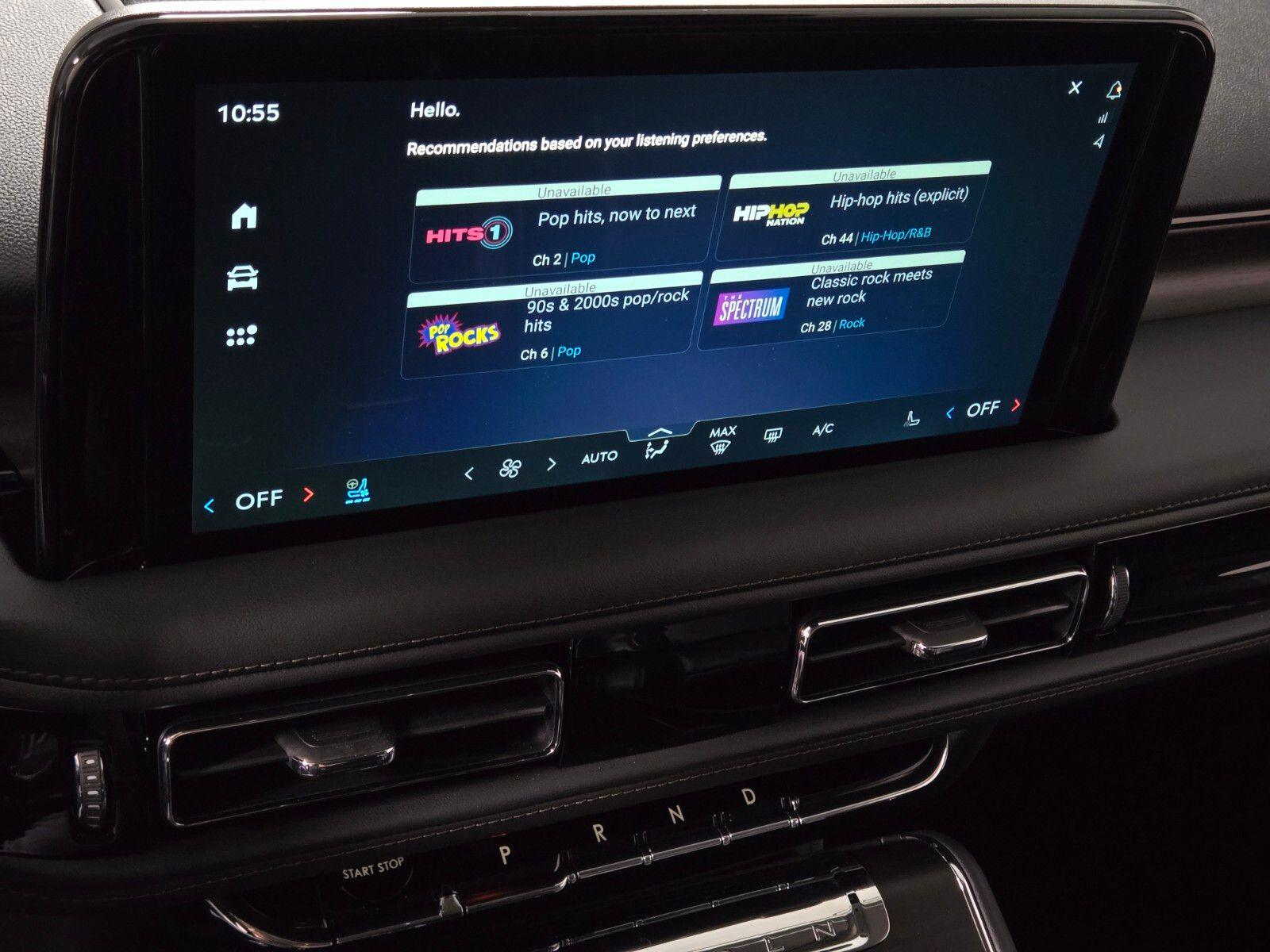 2026 Lincoln Aviator Reserve Infinite Black Metallic Clearcoat AWD 10-Speed Automatic 3.0L V6This Lincoln Aviator is equipped with the following features: Dynamic Handling Package (Air Glide Suspension with Dynamic Lower Entry), Equipment Group 201A Reserve II (Advanced Heads-Up Display, Auto Air Refresh, Auto Heated and Ventilated Driver and Passenger Seats, Lincoln BlueCruise Equipped (4-Years Included), Premium Leather Front Captain's Chairs, Wheels: 22"" Bright-Machined Aluminum with Magnetic Painted Pockets, and Wireless Charging Pad), Illumination Package (Adaptive Dynamic Bending Lighting, Adaptive Pixel LED Headlamps, Illuminated Lincoln Star in Grille, Lincoln Dynamic Signature Lighting, and Speed Dependent Lighting), Lincoln Connectivity Package (4-Years), Luxury Package (30-Way Perfect Position Seats with Active Motion, Heated and Ventilated Rear Seats, and Radio: Revel Ultima 3D Audio System with 28 Speakers), 14 Speakers, 3rd row seats: split-bench, 4-Wheel Disc Brakes, 40/Mini Console/40 Dual Captain's Chairs, ABS brakes, Adaptive suspension, Air Conditioning, Alloy wheels, AM/FM radio: SiriusXM, Apple CarPlay/Android Auto, Audio memory, Auto High-beam Headlights, Auto-dimming door mirrors, Auto-dimming Rear-View mirror, Automatic temperature control, Brake assist, Bumpers: body-color, Compass, Delay-off headlights, Driver door bin, Driver vanity mirror, Dual front impact airbags, Dual front side impact airbags, Electronic Stability Control, Emergency communication system: 911 Assist, Four wheel independent suspension, Front anti-roll bar, Front Bucket Seats, Front Center Armrest, Front dual zone A/C, Front License Plate Bracket, Front reading lights, Full Rear Console, Fully automatic headlights, Garage door transmitter, Genuine wood console insert, Genuine wood dashboard insert, Heads-Up Display, Heated door mirrors, Heated front seats, Heated steering wheel, HVAC memory, Illuminated entry, Knee airbag, Leather steering wheel, Lincoln App, Lincoln Digital Experience, Low tire pressure warning, Memory seat, Navigation system: Google Maps, Occupant sensing airbag, Outside temperature display, Overhead airbag, Overhead console, Panic alarm, Passenger door bin, Passenger vanity mirror, Power door mirrors, Power driver seat, Power Liftgate, Power moonroof: Panoramic Vista Roof, Power passenger seat, Power steering, Power windows, Radio data system, Radio: Revel Audio System with 14 Speakers, Rain sensing wipers, Rear air conditioning, Rear anti-roll bar, Rear audio controls, Rear dual zone A/C, Rear reading lights, Rear window defroster, Rear window wiper, Remote keyless entry, Security system, SiriusXM, Speed control, Speed-Sensitive Wipers, Split folding rear seat, Spoiler, Steering wheel memory, Steering wheel mounted A/C controls, Steering wheel mounted audio controls, Tachometer, Telescoping steering wheel, Tilt steering wheel, Traction control, Trip computer, Turn signal indicator mirrors, Variably intermittent wipers, Ventilated front seats, and Wheels: 21"" Bright-Machined Aluminum with Dark Alloy Painted Pockets.