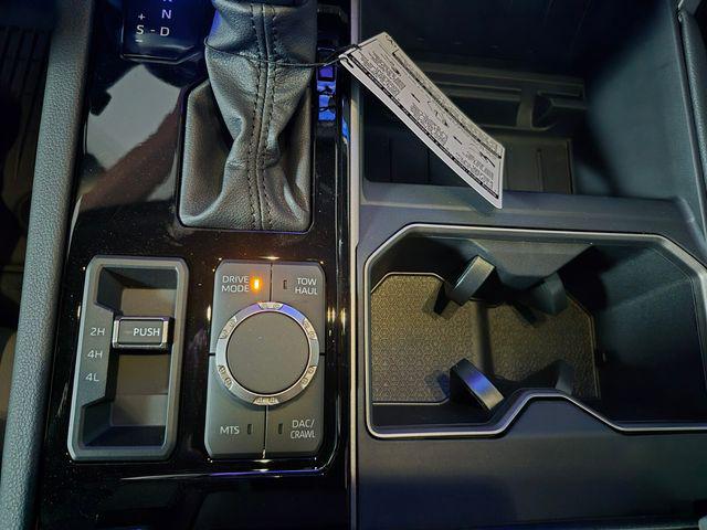 - TRD Off-Road Package - Includes 20-in. TRD alloy wheels with all-terrain tires, TRD grille, "TRD OFF-ROAD" bed-side decal, off-road suspension with Bilstein shocks, skid plates, mud guards, red TRD engine start button, TRD leather-wrapped shift knob, aluminum sport pedals, electronically controlled locking rear differential, Multi-Terrain Select (MTS), Crawl Control (CRAWL), and Downhill Assist Control (DAC)