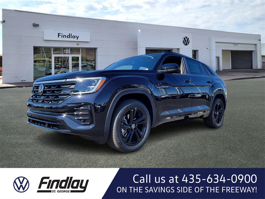 Black 2026 Volkswagen Atlas Cross Sport 2.0T SEL R-Line Black AWD 8-Speed Automatic with Tiptronic 2.0L TSIWelcome to Findlay Volkswagen in St. George. We include complimentary, the 1st 3 oil changes with your new car purchase. This Volkswagen Atlas Cross Sport is equipped with the following options: 4-Wheel Disc Brakes, 4-Wheel Independent Suspension, 6 Speakers, ABS brakes, Active Cruise Control, Air Conditioning, Alloy wheels, AM/FM radio: SiriusXM with 360L, Auto High-beam Headlights, Auto-dimming Rear-View mirror, Automatic temperature control, Brake assist, Bumpers: body-color, Compass, Delay-off headlights, Driver door bin, Driver vanity mirror, Dual front impact airbags, Dual front side impact airbags, Electronic Stability Control, Exterior Parking Camera Rear, Four wheel independent suspension, Front anti-roll bar, Front Bucket Seats, Front Center Armrest, Front dual zone A/C, Front fog lights, Front reading lights, Fully automatic headlights, Heads-Up Display, Heated door mirrors, Heated front seats, Heated rear seats, Heated steering wheel, Illuminated entry, Low tire pressure warning, Memory seat, Navigation System, Occupant sensing airbag, Outside temperature display, Overhead airbag, Overhead console, Panic alarm, Passenger door bin, Passenger vanity mirror, Perforated Vienna Leather Seating Surfaces, Power door mirrors, Power driver seat, Power Liftgate, Power moonroof: Panoramic, Power passenger seat, Power steering, Power windows, Radio data system, Rain sensing wipers, Rear anti-roll bar, Rear reading lights, Rear seat center armrest, Rear window defroster, Rear window wiper, Remote keyless entry, Security system, Speed control, Speed-sensing steering, Split folding rear seat, Spoiler, Steering wheel mounted audio controls, Tachometer, Telescoping steering wheel, Tilt steering wheel, Traction control, Trip computer, Turn signal indicator mirrors, Variably intermittent wipers, Ventilated front seats, Wheels: 20"" Black Painted Alloy.19/26 City/Highway MPG