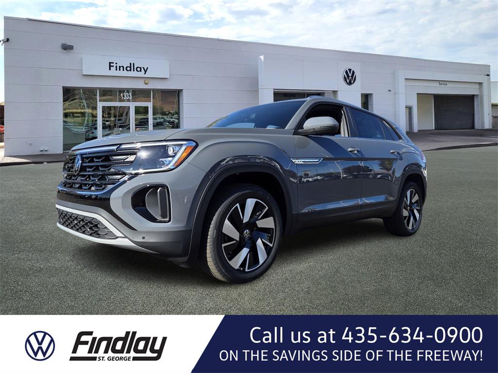 Gray 2026 Volkswagen Atlas Cross Sport 2.0T SE w/Technology FWD 8-Speed Automatic with Tiptronic 2.0L TSIWelcome to Findlay Volkswagen in St. George. We include complimentary, the 1st 3 oil changes with your new car purchase. This Volkswagen Atlas Cross Sport is equipped with the following options: 4-Wheel Disc Brakes, 4-Wheel Independent Suspension, 6 Speakers, ABS brakes, Air Conditioning, Alloy wheels, AM/FM radio: SiriusXM with 360L, Auto High-beam Headlights, Auto-dimming Rear-View mirror, Automatic temperature control, Brake assist, Bumpers: body-color, Compass, Delay-off headlights, Driver door bin, Driver vanity mirror, Dual front impact airbags, Dual front side impact airbags, Electronic Stability Control, Emergency communication system: VW Car-Net Safe & Secure 5-year, Exterior Parking Camera Rear, Four wheel independent suspension, Front anti-roll bar, Front Bucket Seats, Front Center Armrest, Front dual zone A/C, Front fog lights, Front reading lights, Fully automatic headlights, Garage door transmitter: HomeLink, Heated & Actively Ventilated Front Bucket Seats, Heated door mirrors, Heated front seats, Heated steering wheel, Illuminated entry, Low tire pressure warning, Occupant sensing airbag, Outside temperature display, Overhead airbag, Overhead console, Panic alarm, Passenger door bin, Passenger vanity mirror, Perforated V-Tex Leatherette Seating Surfaces, Power door mirrors, Power driver seat, Power Liftgate, Power steering, Power windows, Radio data system, Radio: MIB3 Composition Media, Rain sensing wipers, Rear anti-roll bar, Rear reading lights, Rear seat center armrest, Rear window defroster, Rear window wiper, Remote keyless entry, Security system, Speed control, Speed-sensing steering, Split folding rear seat, Spoiler, Steering wheel mounted audio controls, Tachometer, Telescoping steering wheel, Tilt steering wheel, Traction control, Trip computer, Turn signal indicator mirrors, Variably intermittent wipers, Ventilated front seats, Wheels: 20"" 5-Spoke 2-Tone Machined Alloy.20/26 City/Highway MPG