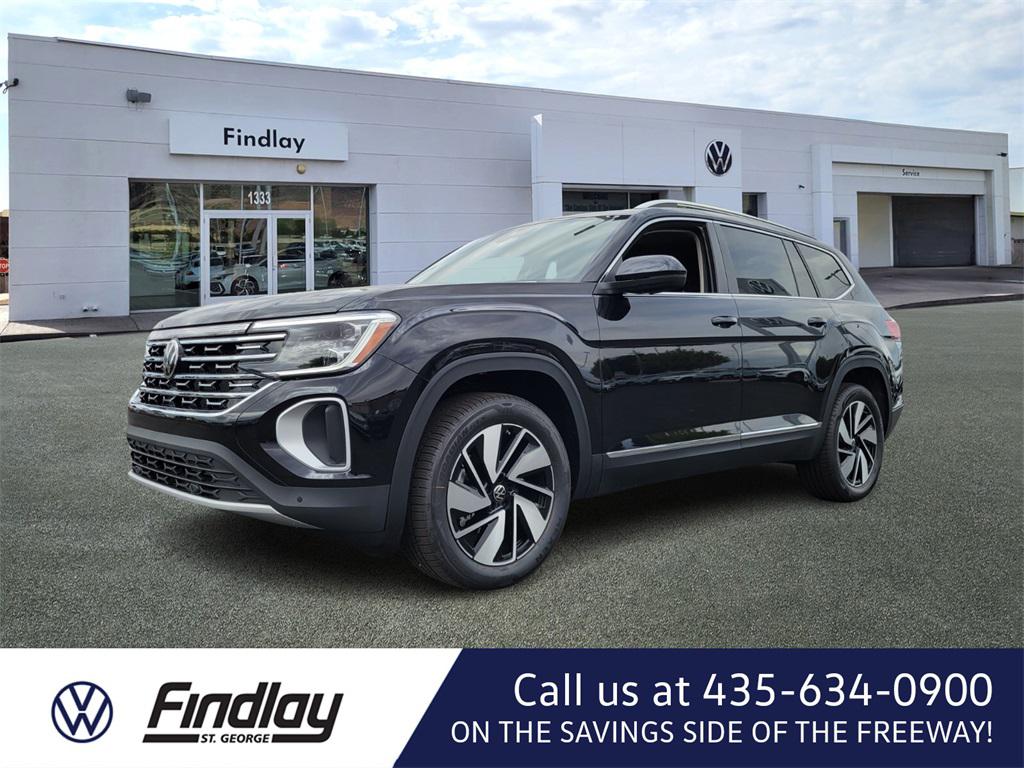 Black 2026 Volkswagen Atlas 2.0T SEL AWD 8-Speed Automatic with Tiptronic 2.0L TSIWelcome to Findlay Volkswagen in St. George. We include complimentary, the 1st 3 oil changes with your new car purchase. This Volkswagen Atlas is equipped with the following options: 3rd row seats: split-bench, 4-Wheel Disc Brakes, 6 Speakers, ABS brakes, Active Cruise Control, Air Conditioning, Alloy wheels, AM/FM radio: SiriusXM with 360L, Auto High-beam Headlights, Auto-dimming Rear-View mirror, Automatic temperature control, Brake assist, Bumpers: body-color, Compass, Delay-off headlights, Driver door bin, Driver vanity mirror, Dual front impact airbags, Dual front side impact airbags, Electronic Stability Control, Emergency communication system: VW Car-Net Safe & Secure 5-year, Exterior Parking Camera Rear, Four wheel independent suspension, Four-wheel Independent Suspension, Front anti-roll bar, Front Bucket Seats, Front Center Armrest, Front dual zone A/C, Front fog lights, Front reading lights, Fully automatic headlights, Garage door transmitter: HomeLink Connect, Heads-Up Display, Heated & Actively Ventilated Front Bucket Seats, Heated door mirrors, Heated front seats, Heated rear seats, Heated steering wheel, Illuminated entry, Low tire pressure warning, Memory seat, Navigation System, Occupant sensing airbag, Outside temperature display, Overhead airbag, Overhead console, Panic alarm, Passenger door bin, Passenger vanity mirror, Perforated Vienna Leather Seating Surfaces, Power door mirrors, Power driver seat, Power Liftgate, Power moonroof: Panoramic, Power passenger seat, Power steering, Power windows, Radio data system, Radio: MIB3 Discover Pro w/Navigation, Rain sensing wipers, Rear air conditioning, Rear anti-roll bar, Rear reading lights, Rear seat center armrest, Rear window defroster, Rear window wiper, Remote keyless entry, Security system, Speed control, Speed-sensing steering, Split folding rear seat, Spoiler, Steering wheel mounted audio controls, Tachometer, Telescoping steering wheel, Tilt steering wheel, Traction control, Trip computer, Turn signal indicator mirrors, Variably intermittent wipers, Ventilated front seats, Wheels: 20"" 2-Tone Machined Alloy.