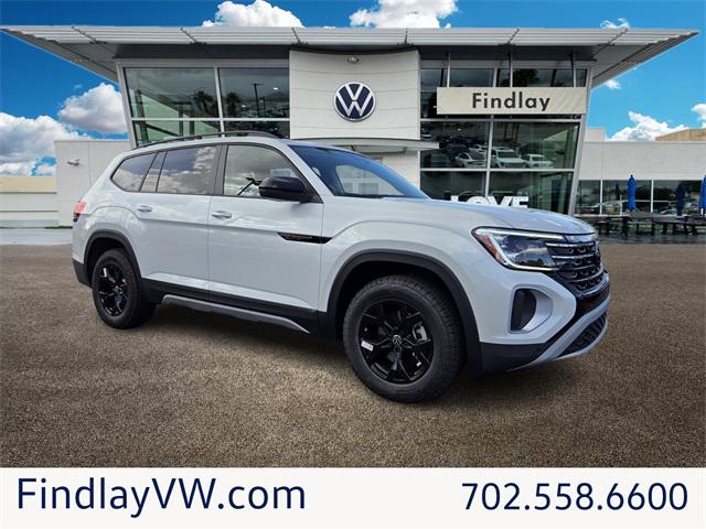 Opal White 2026 Volkswagen Atlas 2.0T Peak Edition AWD 8-Speed Automatic with Tiptronic 2.0L TSI 3rd row seats: split-bench, 4-Wheel Disc Brakes, 4-Wheel Independent Suspension, 6 Speakers, ABS brakes, Air Conditioning, AM/FM radio: SiriusXM with 360L, Auto High-beam Headlights, Auto-dimming Rear-View mirror, Automatic temperature control, Brake assist, Bumpers: body-color, Compass, Custom 20"" Black Wheels, Delay-off headlights, Driver door bin, Driver vanity mirror, Dual front impact airbags, Dual front side impact airbags, Electronic Stability Control, Emergency communication system: VW Car-Net Safe & Secure 5-year, Exterior Parking Camera Rear, Four wheel independent suspension, Front anti-roll bar, Front Bucket Seats, Front Center Armrest, Front dual zone A/C, Front fog lights, Front reading lights, Fully automatic headlights, Garage door transmitter: Homelink, Heated and Actively Ventilated Front Bucket Seats, Heated door mirrors, Heated front seats, Heated steering wheel, Illuminated entry, Low tire pressure warning, Occupant sensing airbag, Outside temperature display, Overhead airbag, Overhead console, Panic alarm, Passenger door bin, Passenger vanity mirror, Perforated V-Tex Leatherette Seating Surfaces, Power door mirrors, Power driver seat, Power Liftgate, Power moonroof: Panoramic, Power steering, Power windows, Radio data system, Radio: MIB3 Composition Media, Rain sensing wipers, Rear air conditioning, Rear anti-roll bar, Rear reading lights, Rear seat center armrest, Rear window defroster, Rear window wiper, Remote keyless entry, Security system, Speed control, Speed-sensing steering, Split folding rear seat, Spoiler, Steering wheel mounted audio controls, Tachometer, Telescoping steering wheel, Tilt steering wheel, Traction control, Trip computer, Turn signal indicator mirrors, Variably intermittent wipers, Ventilated front seats, Wheels: 18"" Black Painted 5-Spoke Alloy.