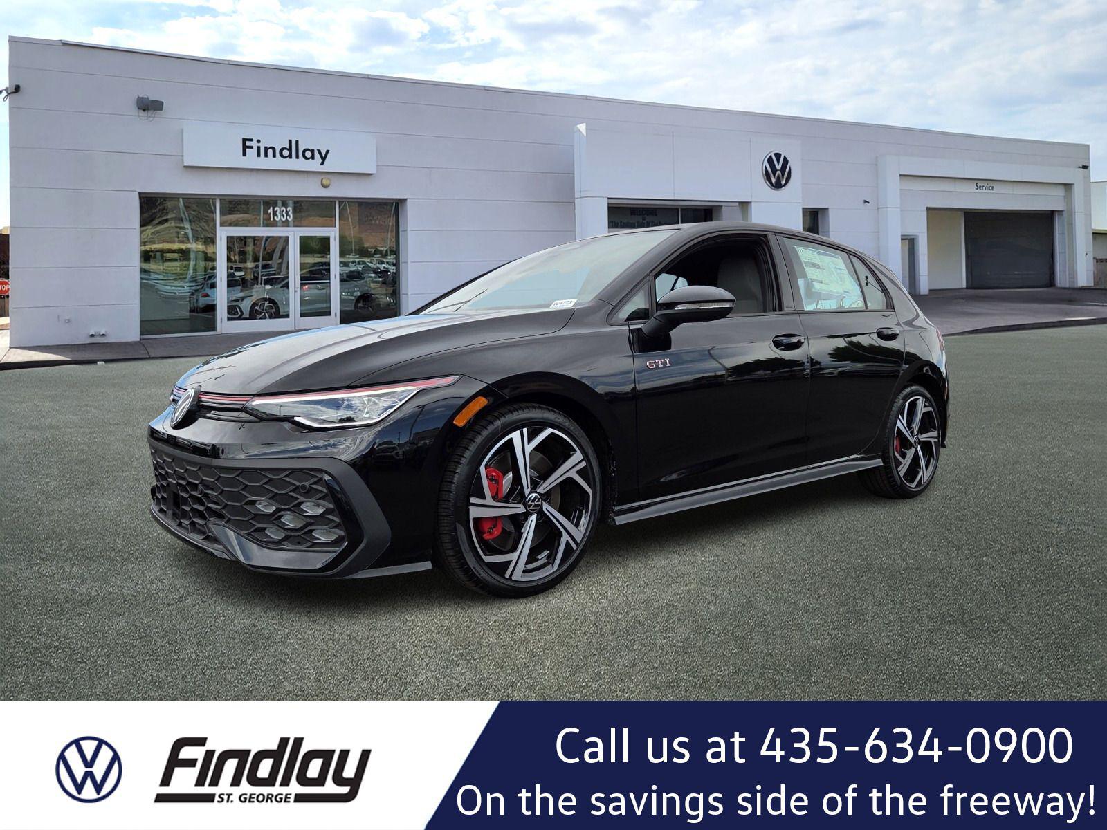 Black 2026 Volkswagen Golf GTI 2.0T SE FWD 7-Speed DSG Automatic with Tiptronic 2.0L TSI DOHCWelcome to Findlay Volkswagen in St. George. We include complimentary, the 1st 3 oil changes with your new car purchase. This Volkswagen Golf GTI is equipped with the following options: 4-Wheel Disc Brakes, 9 Speakers, ABS brakes, Air Conditioning, Alloy wheels, AM/FM radio: SiriusXM with 360L, ArtVelours Seating Surfaces, Auto High-beam Headlights, Auto-dimming Rear-View mirror, Automatic temperature control, Brake assist, Bumpers: body-color, Compass, Delay-off headlights, Driver door bin, Driver vanity mirror, Dual front impact airbags, Dual front side impact airbags, Electronic Stability Control, Emergency communication system: VW Car-Net Safe & Secure 5-year, Exterior Parking Camera Rear, Forward collision: FCW w/Autonomous Emergency Braking mitigation, Four wheel independent suspension, Front anti-roll bar, Front Bucket Seats, Front Center Armrest, Front fog lights, Front reading lights, Fully automatic headlights, harman/kardon® Speakers, Heated door mirrors, Heated front seats, Heated Front Top Sport Seats, Heated steering wheel, Illuminated entry, Leather steering wheel, Low tire pressure warning, Navigation System, Occupant sensing airbag, Outside temperature display, Overhead airbag, Overhead console, Panic alarm, Passenger door bin, Passenger vanity mirror, Power door mirrors, Power driver seat, Power moonroof: Panoramic, Power passenger seat, Power steering, Power windows, Radio data system, Radio: MIB3 Discover Pro AM/FM/HD w/12.9"" Touchscreen Navigation, Rain sensing wipers, Rear anti-roll bar, Rear reading lights, Rear seat center armrest, Rear window defroster, Rear window wiper, Remote keyless entry, Security system, Speed control, Speed-sensing steering, Speed-Sensitive Wipers, Split folding rear seat, Spoiler, Sport steering wheel, Steering wheel mounted audio controls, Tachometer, Telescoping steering wheel, Tilt steering wheel, Traction control, Trip computer, Turn signal indicator mirrors, Variably intermittent wipers, Wheels: 18"" 2-Tone Diamond-Turned Alloy.Recent Arrival! 24/32 City/Highway MPGAwards: * Motor Trend Automobiles of the year