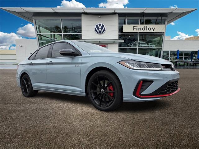 Monument Gray w/Dp Blk Rf 2026 Volkswagen Jetta GLI 2.0T Autobahn FWD 7-Speed DSG Automatic with Tiptronic 2.0L TSI DOHC 4-Wheel Disc Brakes, 8 Speakers, ABS brakes, Active Blind Spot Monitor, Air Conditioning, AM/FM radio: SiriusXM with 360L, Auto High-beam Headlights, Auto-dimming Rear-View mirror, Automatic temperature control, Black Trunk Lid Lip Spoiler, Brake assist, Bumpers: body-color, Custom 20"" Black Wheels, Deep Black Pearl Roof, Deep Black Pearl Side Mirror Caps, Delay-off headlights, Driver door bin, Driver vanity mirror, Dual front impact airbags, Dual front side impact airbags, Electronic Stability Control, Emergency communication system: VW Car-Net Safe & Secure 5-year, Exterior Parking Camera Rear, Four wheel independent suspension, Front anti-roll bar, Front Bucket Seats, Front Center Armrest, Front dual zone A/C, Front reading lights, Fully automatic headlights, GLI Black Package, Heated and Actively Ventilated Front Seats, Heated door mirrors, Heated front seats, Heated steering wheel, Heavy Duty Trunk Liner with VW CarGo Blocks, Illuminated entry, Leather Shift Knob, Leather steering wheel, Low tire pressure warning, Memory seat, Occupant sensing airbag, Outside temperature display, Overhead airbag, Overhead console, Panic alarm, Passenger door bin, Passenger vanity mirror, Perforated Vienna Leather Seating Surfaces, Power door mirrors, Power driver seat, Power moonroof, Power steering, Power windows, Radio data system, Radio: MIB3 Composition Media with Touchscreen, Rain sensing wipers, Rear anti-roll bar, Rear reading lights, Rear seat center armrest, Rear window defroster, Remote keyless entry, Rubber Monster Mats (set of 4), Security system, Speed control, Speed-sensing steering, Split folding rear seat, Sport steering wheel, Steering wheel mounted audio controls, Tachometer, Telescoping steering wheel, Tilt steering wheel, Traction control, Trip computer, Turn signal indicator mirrors, Variably intermittent wipers, Ventilated front seats, VW Care, Wheels: 18"" Black Painted Alloy, Wheels: 18"" Two-Tone Machined Alloy.25/35 City/Highway MPG