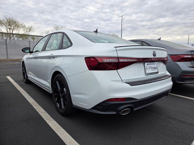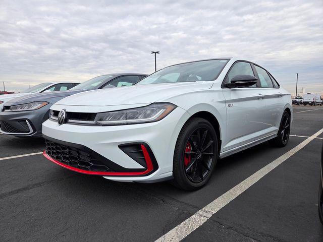 Pure White 2026 Volkswagen Jetta GLI 2.0T Autobahn FWD 7-Speed DSG Automatic with Tiptronic 2.0L TSI DOHC 4-Wheel Disc Brakes, 8 Speakers, ABS brakes, Active Blind Spot Monitor, Air Conditioning, AM/FM radio: SiriusXM with 360L, Auto High-beam Headlights, Auto-dimming Rear-View mirror, Auto-Dimming Rearview Mirror with HomeLink Connect, Automatic temperature control, Black Trunk Lid Lip Spoiler, Brake assist, Bumperdillo Protection Plate in Black For Rear Bumper, Bumpers: body-color, Custom 20"" Black Wheels, Deep Black Pearl Roof, Deep Black Pearl Side Mirror Caps, Delay-off headlights, Driver door bin, Driver vanity mirror, Dual front impact airbags, Dual front side impact airbags, Electronic Stability Control, Emergency communication system: VW Car-Net Safe & Secure 5-year, Exterior Parking Camera Rear, Four wheel independent suspension, Front anti-roll bar, Front Bucket Seats, Front Center Armrest, Front dual zone A/C, Front reading lights, Fully automatic headlights, GLI Black Package, Heated and Actively Ventilated Front Seats, Heated door mirrors, Heated front seats, Heated steering wheel, Heavy Duty Trunk Liner with VW CarGo Blocks, Illuminated entry, Leather Shift Knob, Leather steering wheel, Low tire pressure warning, Memory seat, Occupant sensing airbag, Outside temperature display, Overhead airbag, Overhead console, Panic alarm, Passenger door bin, Passenger vanity mirror, Perforated Vienna Leather Seating Surfaces, Power door mirrors, Power driver seat, Power moonroof, Power steering, Power windows, Radio data system, Radio: MIB3 Composition Media with Touchscreen, Rain sensing wipers, Rear anti-roll bar, Rear reading lights, Rear seat center armrest, Rear window defroster, Remote keyless entry, Roadside Assistance Kit, Rubber Monster Mats (set of 4), Security system, Speed control, Speed-sensing steering, Split folding rear seat, Sport steering wheel, Steering wheel mounted audio controls, Tachometer, Telescoping steering wheel, Tilt steering wheel, Traction control, Trip computer, Turn signal indicator mirrors, Variably intermittent wipers, Ventilated front seats, VW Care, Wheels: 18"" Black Painted Alloy, Wheels: 18"" Two-Tone Machined Alloy.25/35 City/Highway MPG Price includes $793 in dealer added accessories.