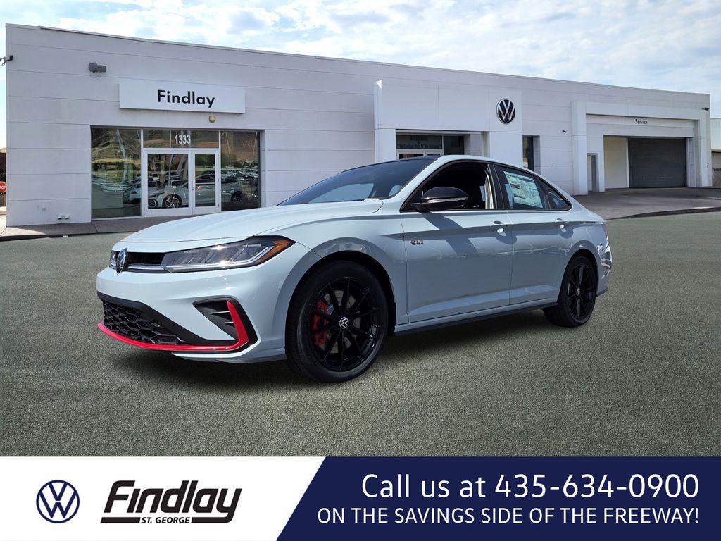 Gray 2026 Volkswagen Jetta GLI 2.0T Autobahn FWD 7-Speed DSG Automatic with Tiptronic 2.0L TSI DOHCWelcome to Findlay Volkswagen in St. George. We include complimentary, the 1st 3 oil changes with your new car purchase. This Volkswagen Jetta GLI is equipped with the following options: 4-Wheel Disc Brakes, 8 Speakers, ABS brakes, Active Blind Spot Monitor, Air Conditioning, Alloy wheels, AM/FM radio: SiriusXM with 360L, Auto High-beam Headlights, Auto-dimming Rear-View mirror, Automatic temperature control, Brake assist, Bumpers: body-color, Delay-off headlights, Driver door bin, Driver vanity mirror, Dual front impact airbags, Dual front side impact airbags, Electronic Stability Control, Emergency communication system: VW Car-Net Safe & Secure 5-year, Exterior Parking Camera Rear, Four wheel independent suspension, Front anti-roll bar, Front Bucket Seats, Front Center Armrest, Front dual zone A/C, Front reading lights, Fully automatic headlights, Heated and Actively Ventilated Front Seats, Heated door mirrors, Heated front seats, Heated steering wheel, Illuminated entry, Leather Shift Knob, Leather steering wheel, Low tire pressure warning, Memory seat, Occupant sensing airbag, Outside temperature display, Overhead airbag, Overhead console, Panic alarm, Passenger door bin, Passenger vanity mirror, Perforated Vienna Leather Seating Surfaces, Power door mirrors, Power driver seat, Power moonroof, Power steering, Power windows, Radio data system, Radio: MIB3 Composition Media with Touchscreen, Rain sensing wipers, Rear anti-roll bar, Rear reading lights, Rear seat center armrest, Rear window defroster, Remote keyless entry, Security system, Speed control, Speed-sensing steering, Split folding rear seat, Sport steering wheel, Steering wheel mounted audio controls, Tachometer, Telescoping steering wheel, Tilt steering wheel, Traction control, Trip computer, Turn signal indicator mirrors, Variably intermittent wipers, Ventilated front seats, Wheels: 18"" Two-Tone Machined Alloy.25/35 City/Highway MPG
