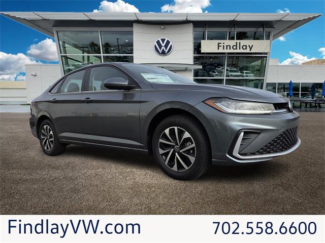 Platinum Gray 2026 Volkswagen Jetta 1.5T S FWD 8-Speed Automatic with Tiptronic 1.5L I-4 DI DOHC Turbocharged Black Cloth, 4 Speakers, 4-Wheel Disc Brakes, ABS brakes, Active Blind Spot Monitor, Air Conditioning, Auto-dimming Rear-View mirror, Automatic temperature control, Brake assist, Bumpers: body-color, Cloth Seat Trim, Custom 20"" Black Wheels, Delay-off headlights, Driver door bin, Driver vanity mirror, Dual front impact airbags, Dual front side impact airbags, Electronic Stability Control, Emergency communication system: VW Car-Net Safe & Secure 5-year, Exterior Parking Camera Rear, Front anti-roll bar, Front Bucket Seats, Front Center Armrest, Front dual zone A/C, Front Seats, Front wheel independent suspension, Fully automatic headlights, Heated door mirrors, Illuminated entry, Leather Shift Knob, Leather steering wheel, Low tire pressure warning, Occupant sensing airbag, Outside temperature display, Overhead airbag, Overhead console, Panic alarm, Passenger door bin, Passenger vanity mirror, Power door mirrors, Power steering, Power windows, Radio data system, Radio: MIB3 Composition Color with 8"" Touchscreen, Rain sensing wipers, Rear anti-roll bar, Rear reading lights, Rear window defroster, Remote keyless entry, Speed control, Speed-sensing steering, Split folding rear seat, Steering wheel mounted audio controls, Tachometer, Telescoping steering wheel, Tilt steering wheel, Traction control, Trip computer, Variably intermittent wipers, VW Care, Wheels: 16"" 2-Tone Machined Alloy, Black Cloth.29/40 City/Highway MPG
