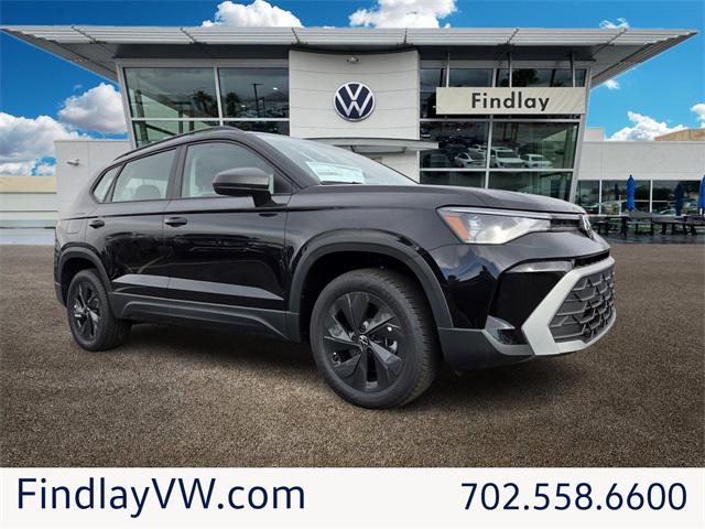 Deep Black 2026 Volkswagen Taos 1.5T S FWD 8-Speed Automatic with Tiptronic 1.5L I4 Turbocharged DOHC 16V LEV3-SULEV30 174hp 4-Wheel Disc Brakes, 6 Speakers, ABS brakes, Active Blind Spot Monitor, Air Conditioning, AM/FM radio, Auto High-beam Headlights, Brake assist, Bumpers: body-color, Cloth Seating Surfaces, Compass, Custom 20"" Black Wheels, Delay-off headlights, Driver door bin, Driver vanity mirror, Dual front impact airbags, Dual front side impact airbags, Electronic Stability Control, Emergency communication system: VW Car-Net Safe & Secure 5-year, Exterior Parking Camera Rear, Front anti-roll bar, Front Bucket Seats, Front Center Armrest, Front reading lights, Front Strut Rear Torsion Beam Suspension, Front wheel independent suspension, Fully automatic headlights, Heated steering wheel, Illuminated entry, Leather Shift Knob, Low tire pressure warning, Occupant sensing airbag, Outside temperature display, Overhead airbag, Overhead console, Panic alarm, Passenger door bin, Passenger vanity mirror, Power door mirrors, Power steering, Power windows, Radio data system, Radio: MIB3 Composition Color AM/FM, Rain sensing wipers, Rear anti-roll bar, Rear seat center armrest, Rear window defroster, Rear window wiper, Remote keyless entry, Rubber Mats Kit, Speed control, Speed-sensing steering, Split folding rear seat, Spoiler, Steering wheel mounted audio controls, Tachometer, Telescoping steering wheel, Tilt steering wheel, Traction control, Trip computer, Variably intermittent wipers, VW Care, Wheels: 17"" Dark Silver Painted Alloy.28/36 City/Highway MPG